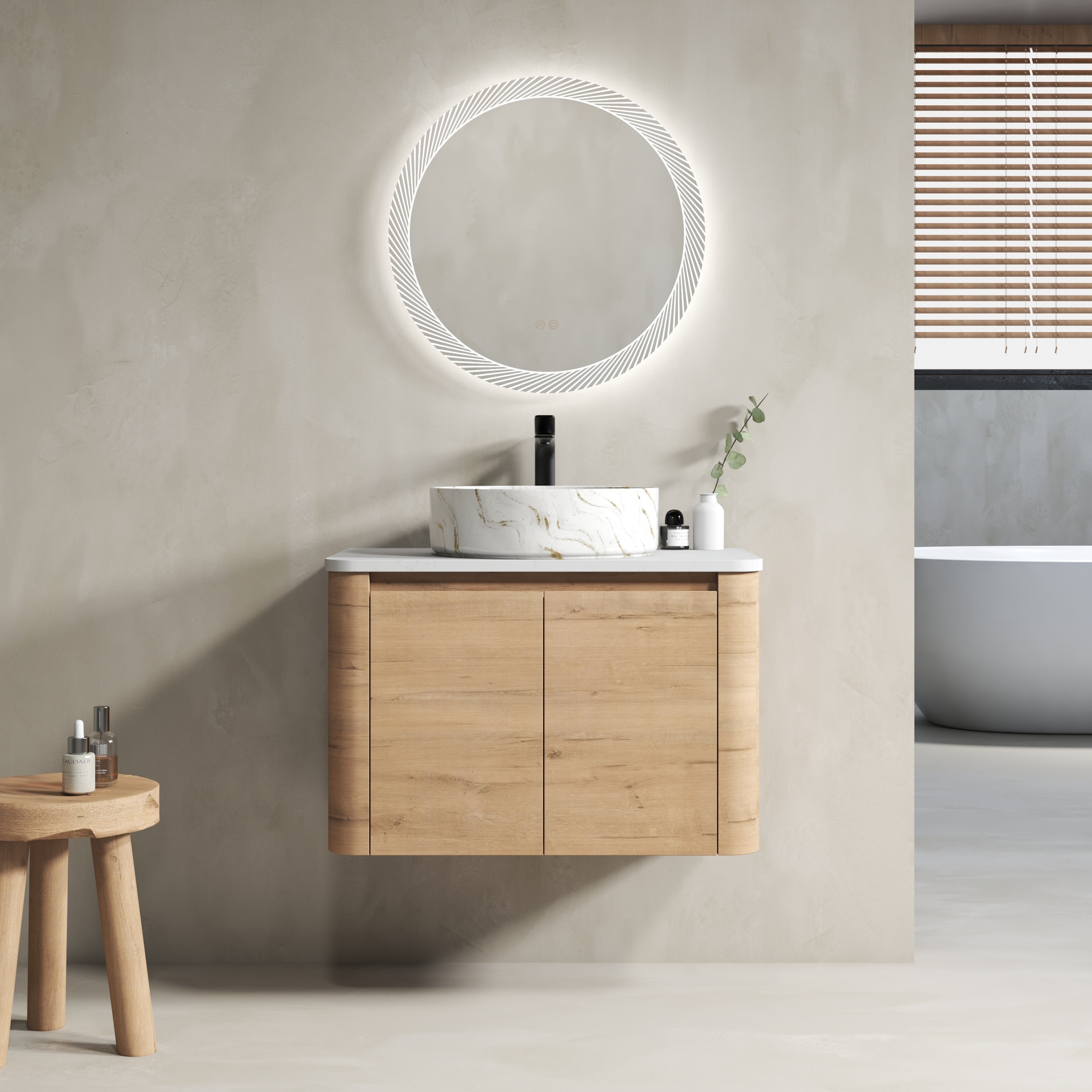 30'' Wall-Mounted Bathroom Vanity With Ceramic Art Sink & 2-Soft-Close Door