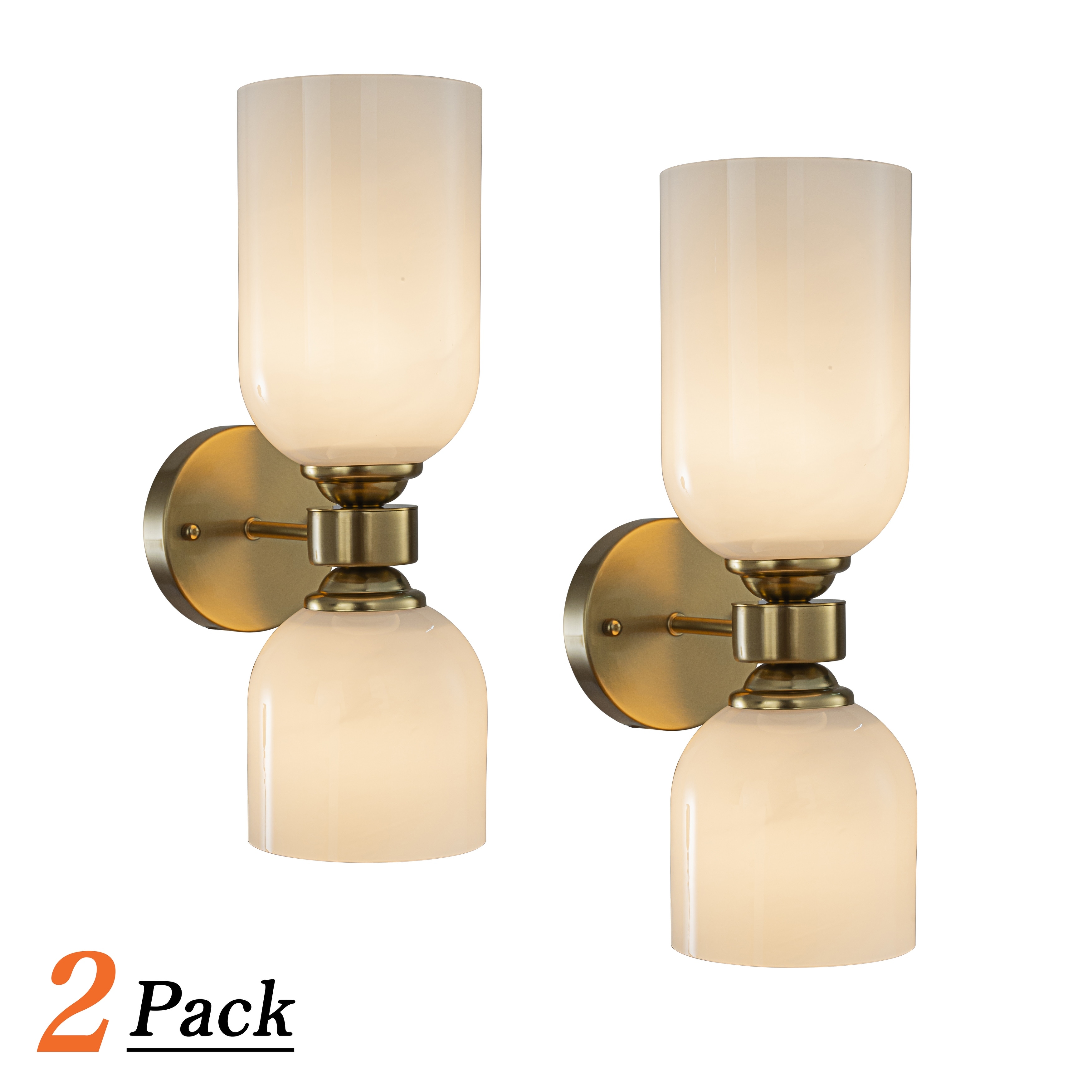 Vintage Brass 2-Light Wall Sconce with Milky Glass Shades Dimmable Vanity For Bathroom Or Hallway(2 Pack) - H16''