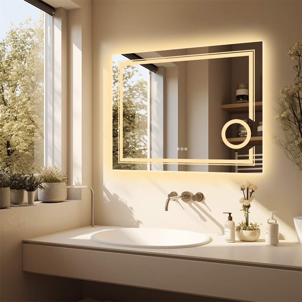 Large Bathroom LED Vanity Mirror Anti-Fog Wall Mounted Magnifier Dimmable Memory