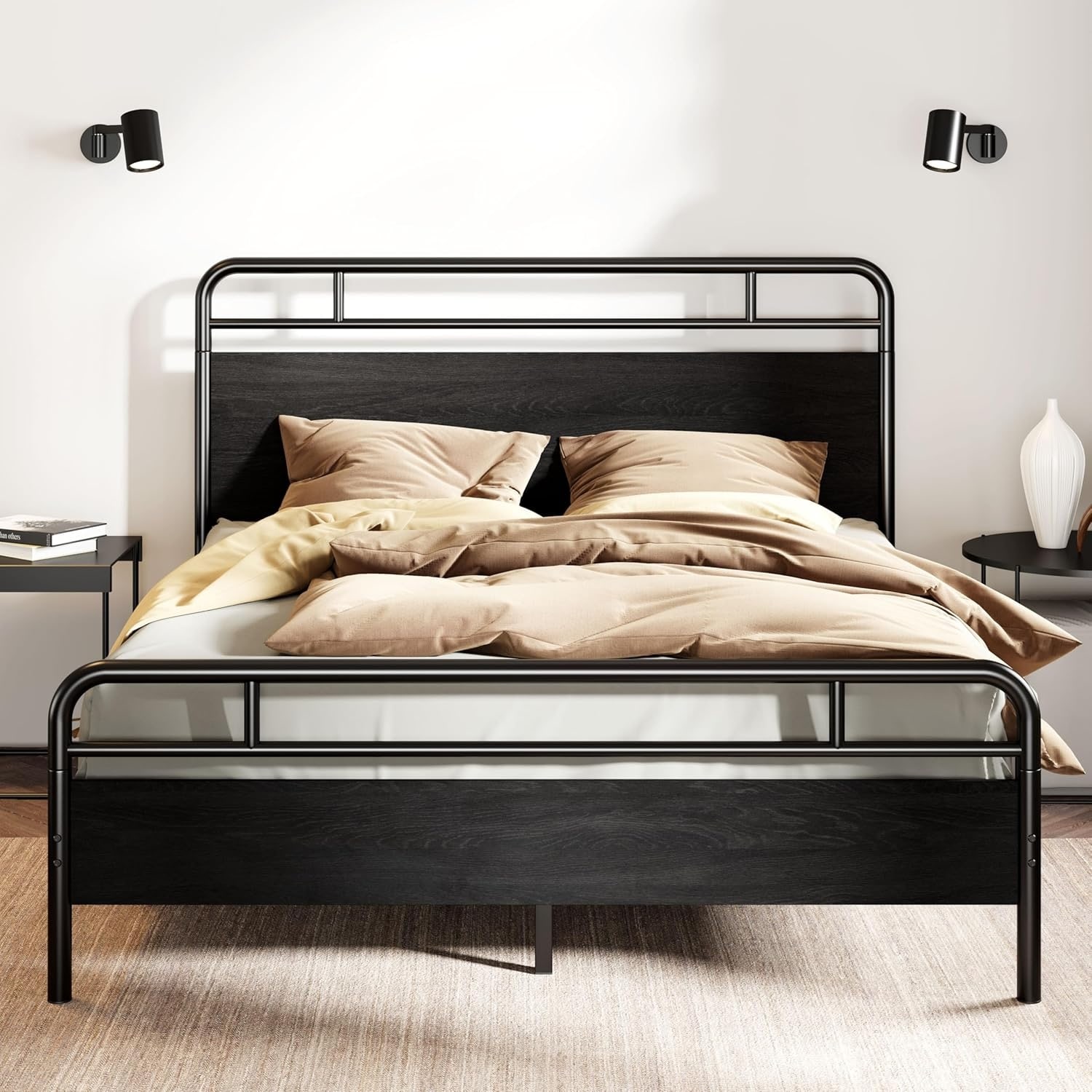 Adjustable Height Iron Headboard, Rustic Farmhouse Style, Elegant Design, Easy Assembly, Universal Fit, King Size, Black Finish