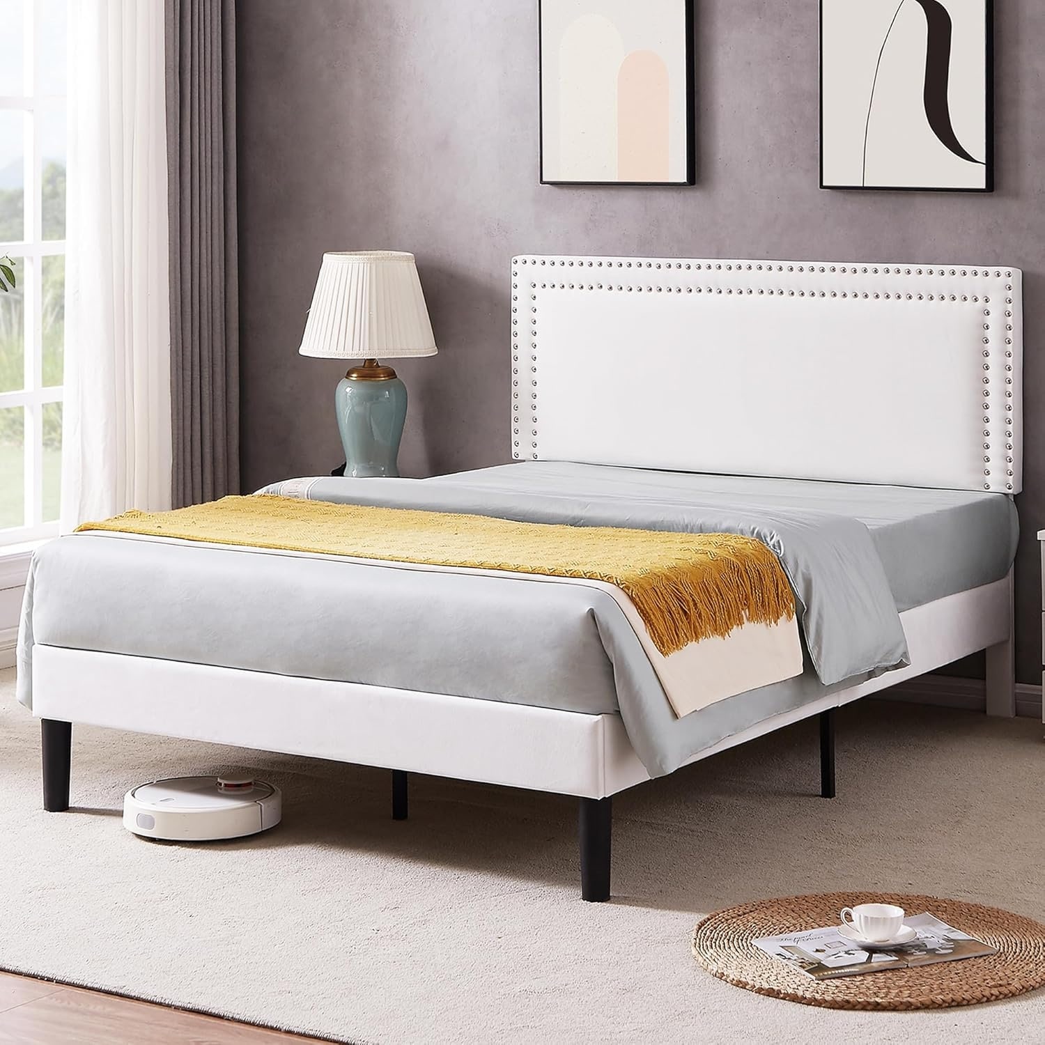 Queen Size Bed Frame with Adjustable Upholstered Headboard, Wooden Slats Platform, Noise-Free Design, Easy Assembly