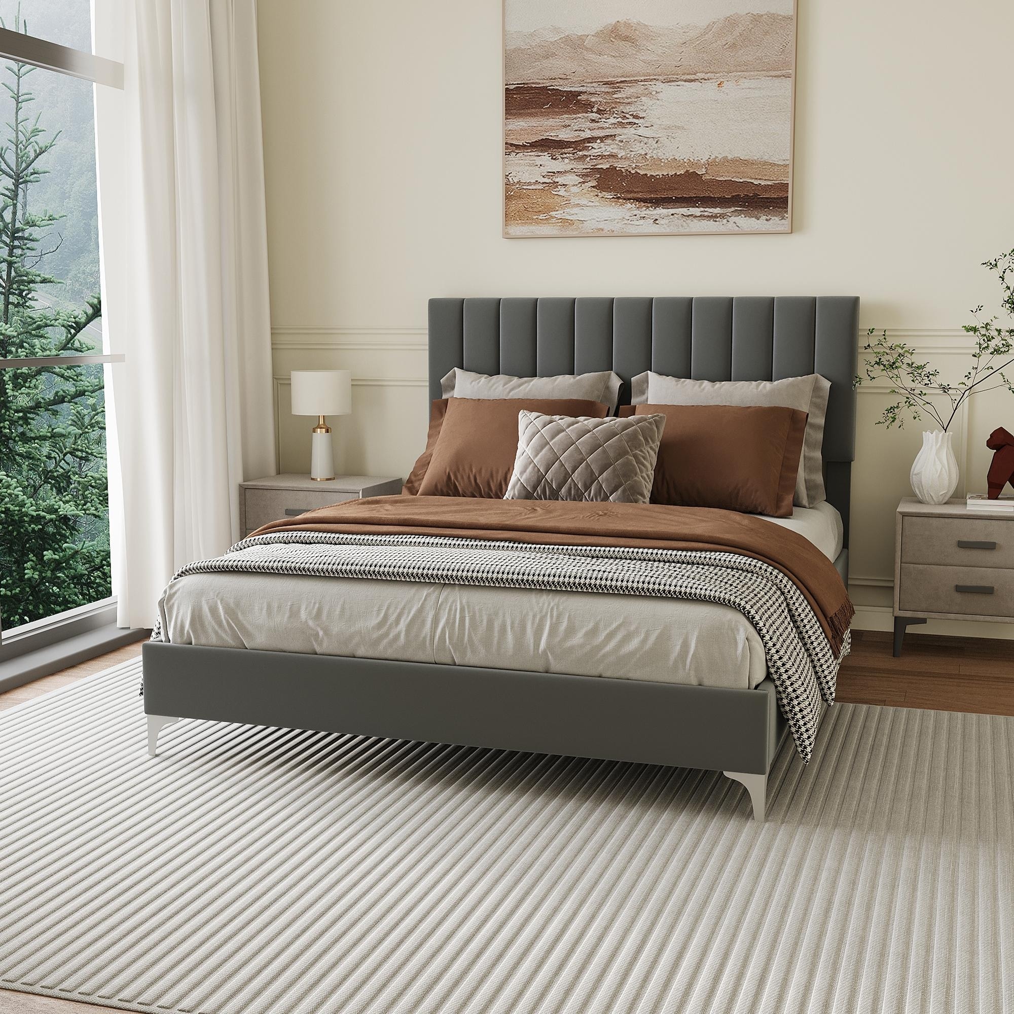 Tall Headboard Upholstered Bed/54" High Headboard/Elegant Simplicity/No Box Spring Needed/Easy Assembly/California King