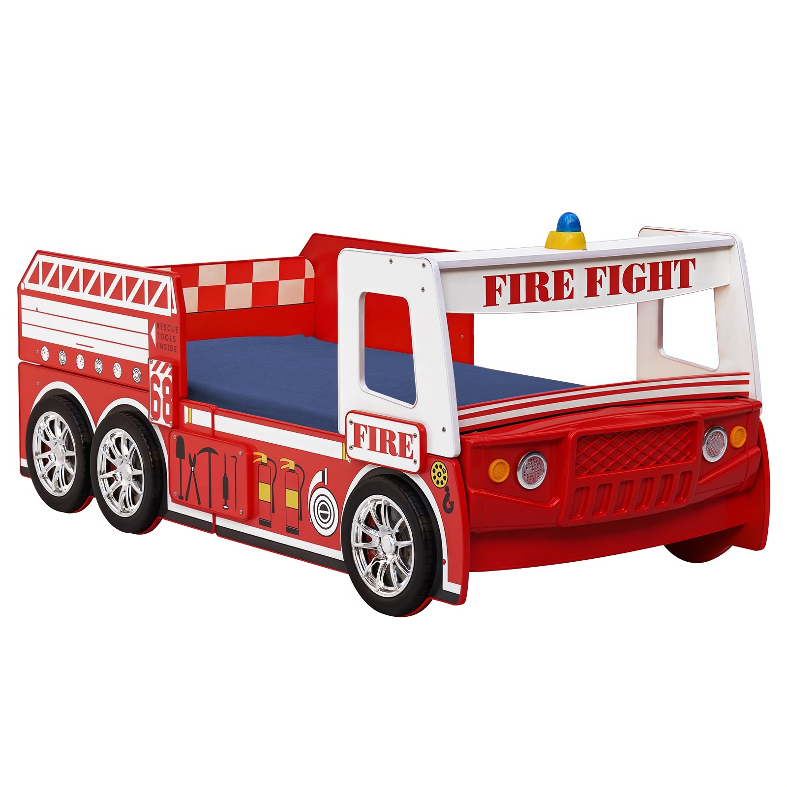 Red & White Twin LED Floor Car Bed with Guardrail - Sturdy MDF Play & Sleep Space for Kids
