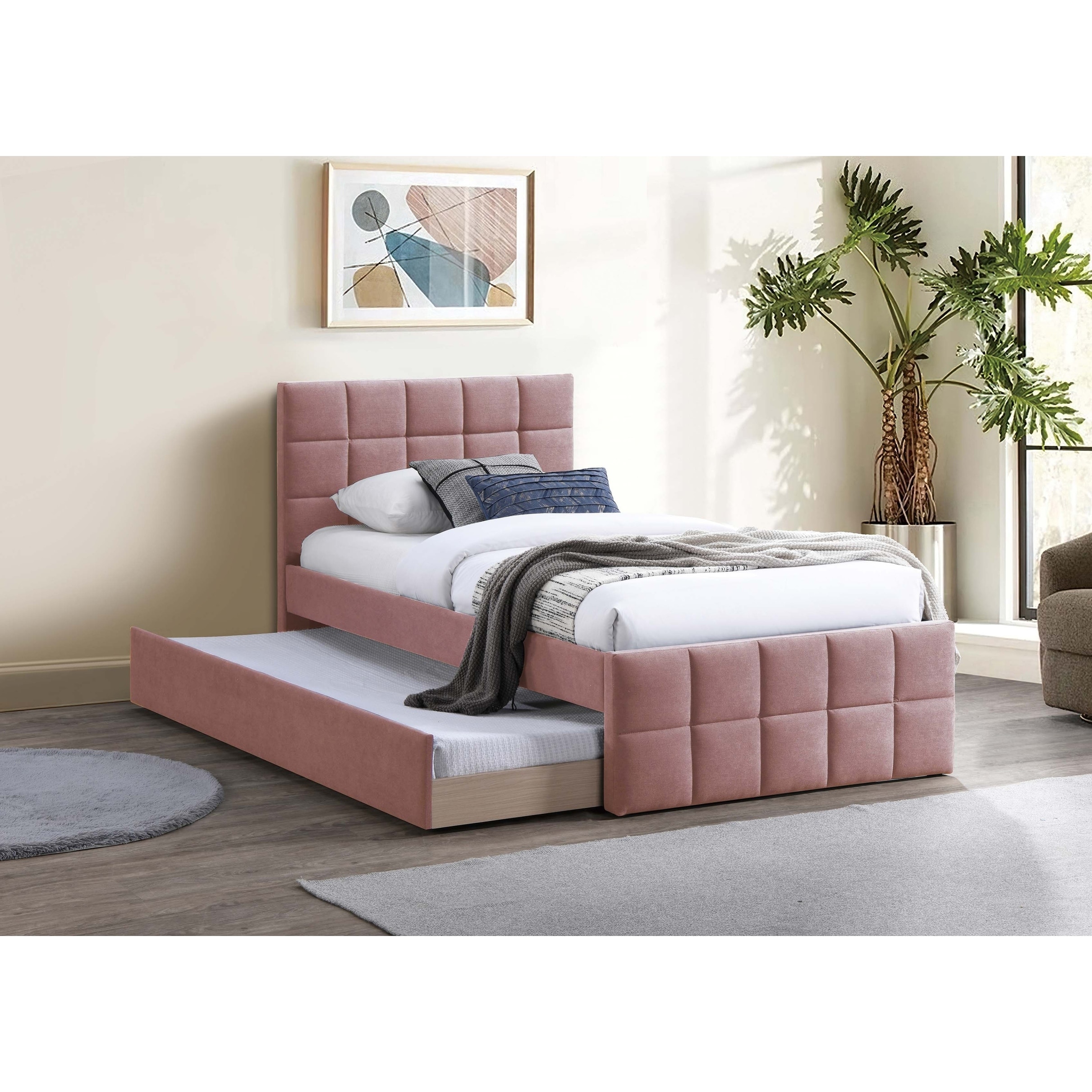 Contemporary Style 1pc Full Size Bed w/ Trundle Upholstered Headboard And Footboard Grid Pattern Light Bedroom Furniture