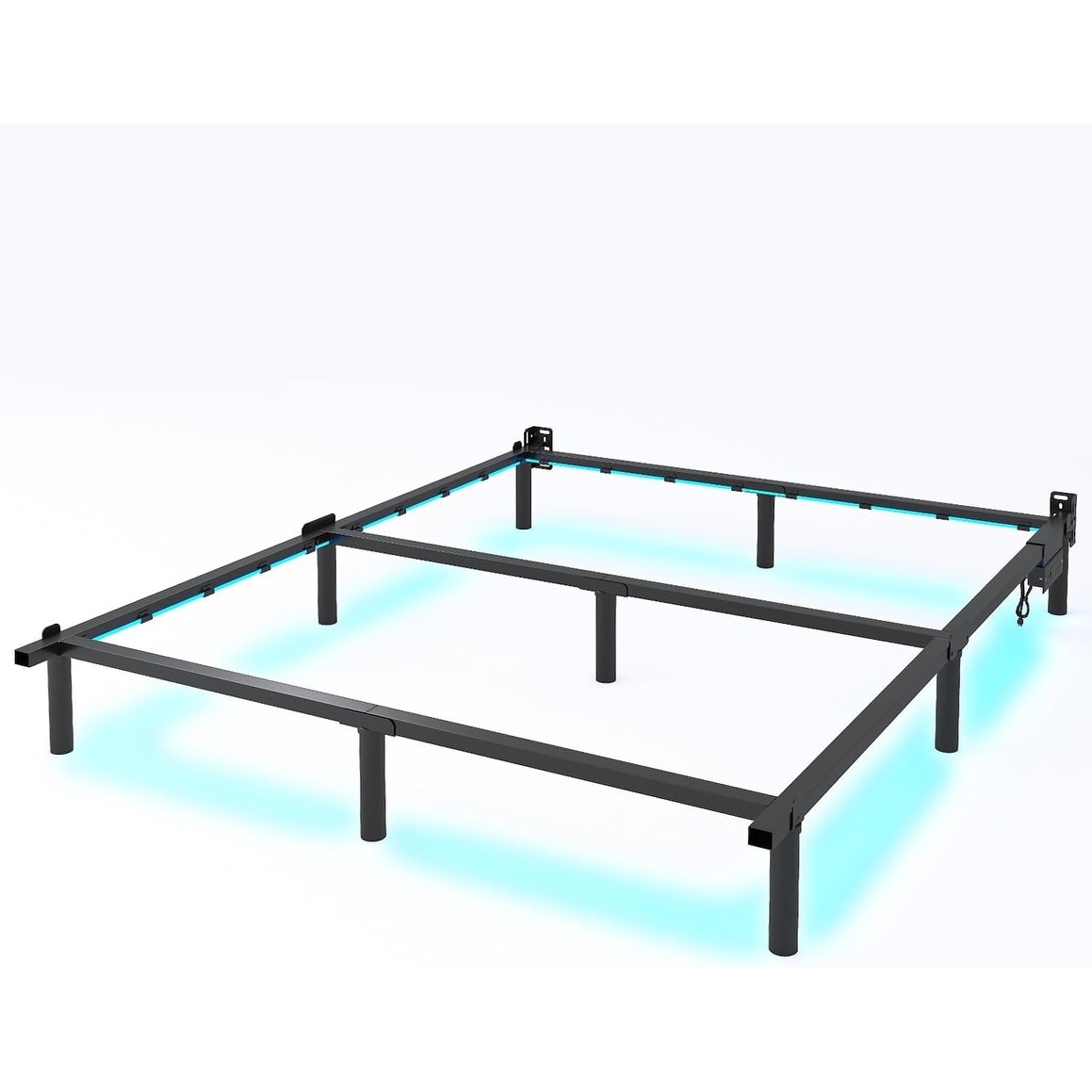 King Size Metal Bed Frame with LED Lights, USB Charging Station, and Easy Assembly