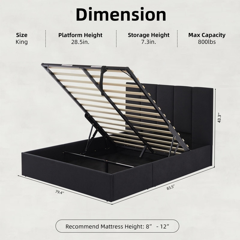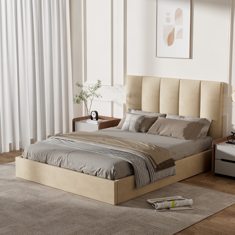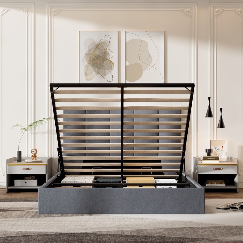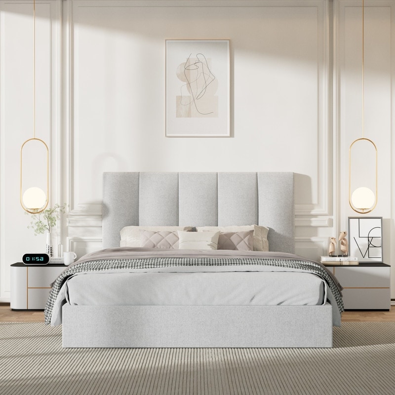 Modern Upholstered Lift-Up Storage Platform Bed with Headboard