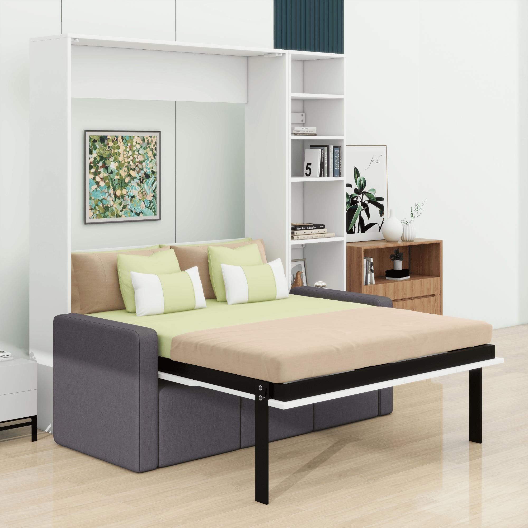 Twin Size Loft Metal Bed with Desk,Shelves,Power Outlet,LED Light and Wardrobe