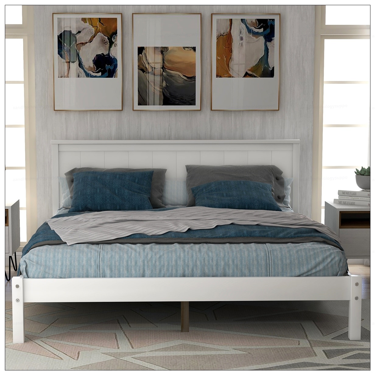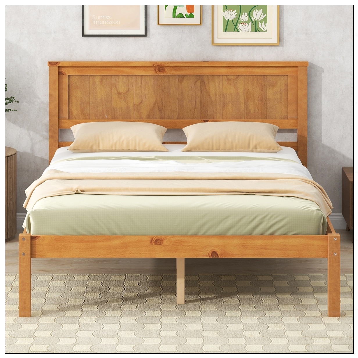 Queen Size Wingback Upholstered Bed, Rustic Farmhouse Style
