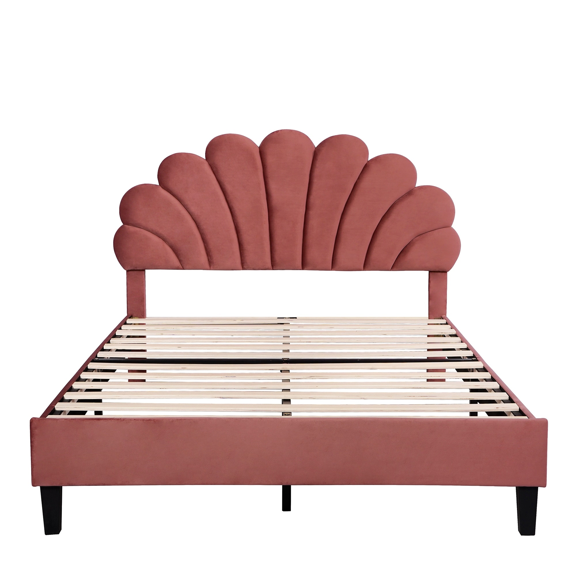 Full Size Upholstered Platform Bed with Flower Pattern Velvet Headboard
