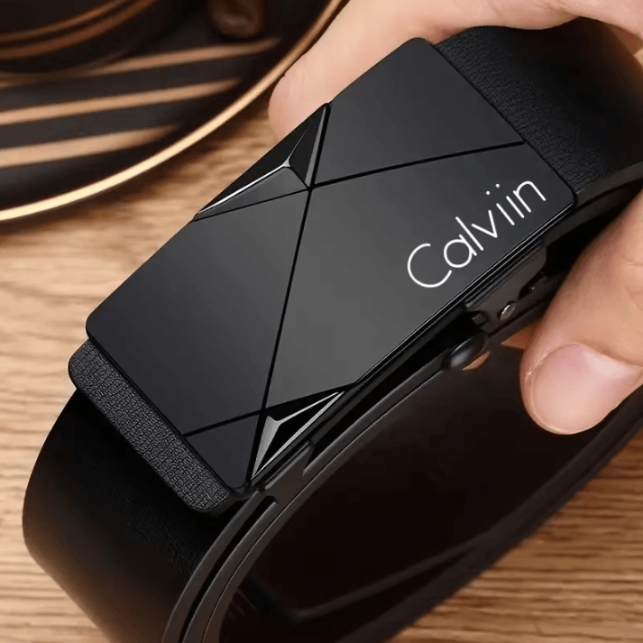 Men Automatic Buckle Leather Belt Luxury Genuine Leather Belt With Ratchet Closure For Business & Casual Wear h 130cm (51.2 Inches)