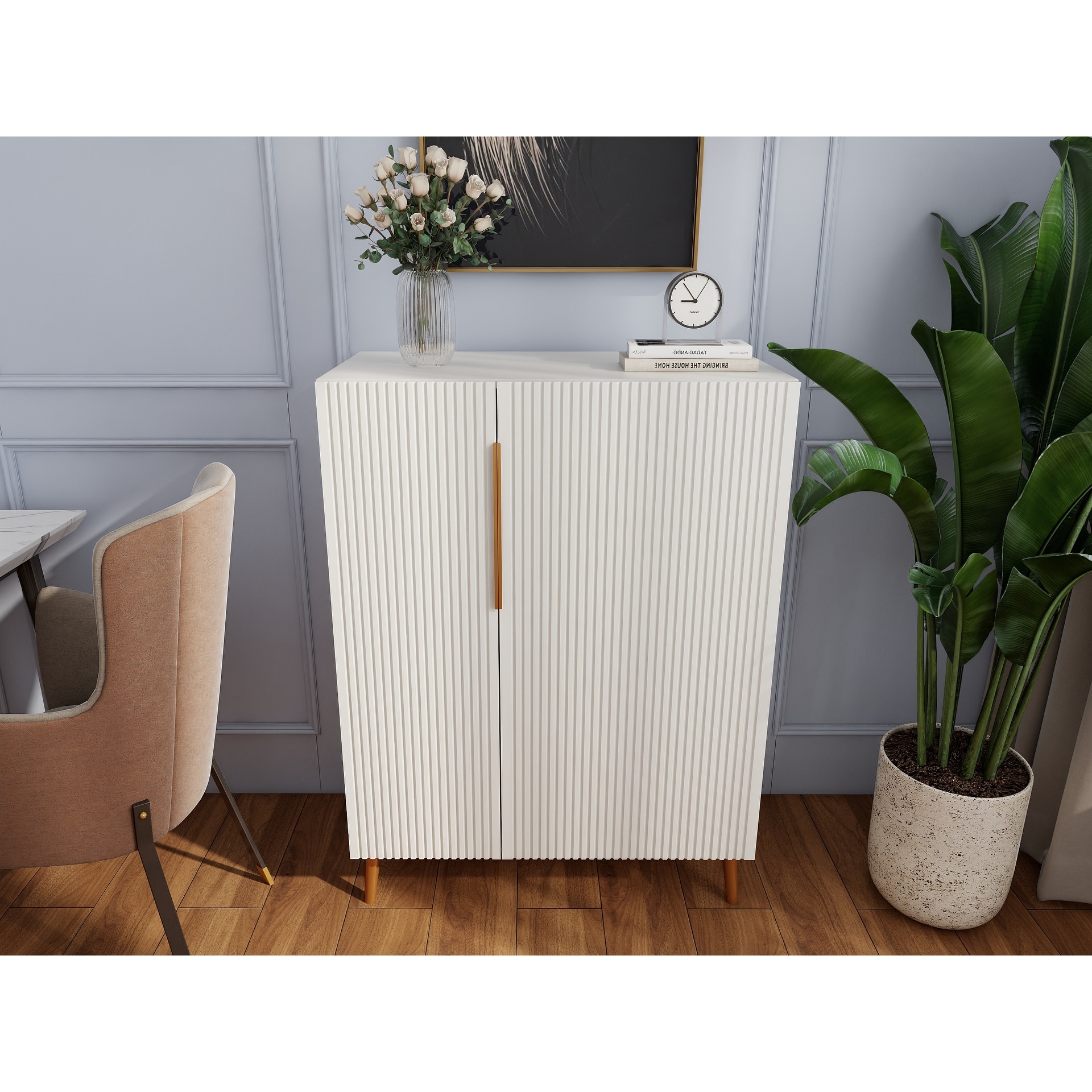 Modern White Sideboard Cabinet With Gold Handles For Kitchen, Dining Room Furniture Organizer