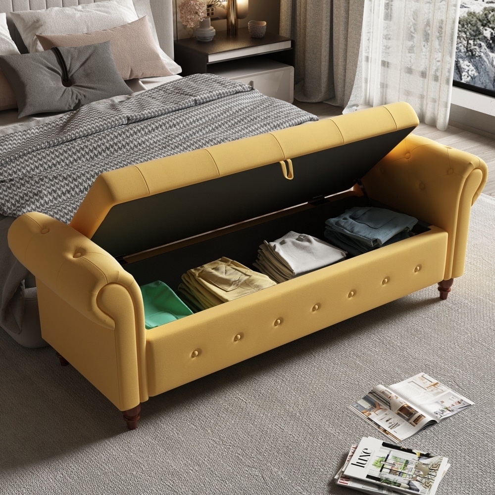 Ottoman Bench with Storage and Rubber Wood Legs