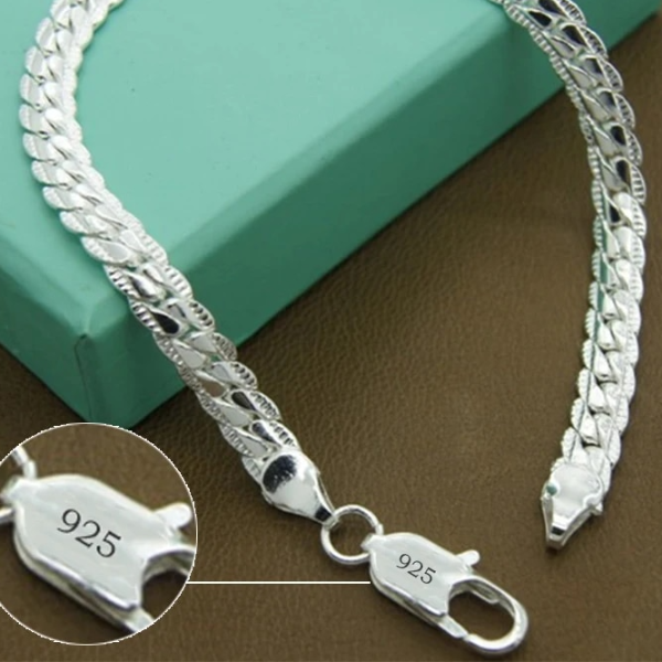 925 Sterling Silver & 24K Gold 6mm Flat Side Chain Bracelet Perfect Wedding & Engagement Jewelry For Men And Women In 18cm Silver