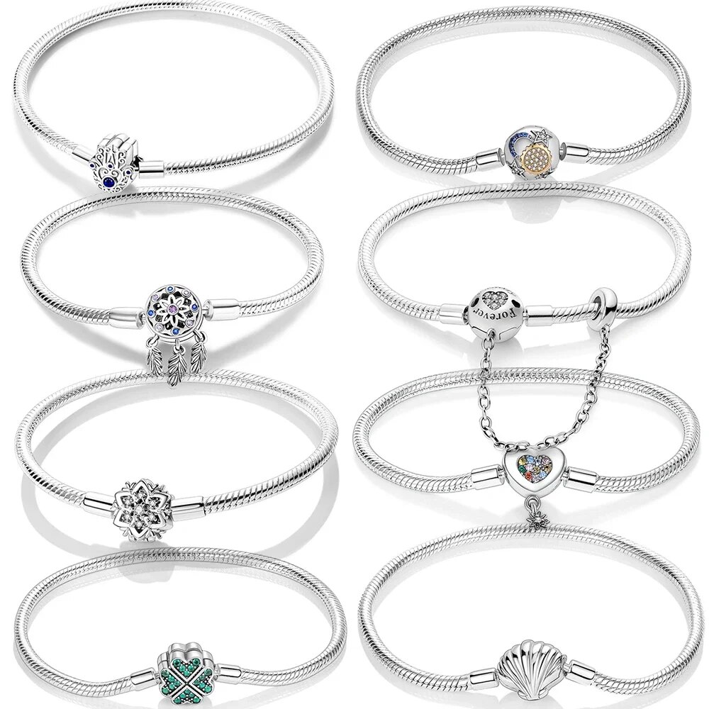 925 Sterling Silver Heart T Bar Cuff Bracelet With Sparkling Blue Disc Clasp: Elegant Snake Chain Women's Jewelry 17cm KJB008