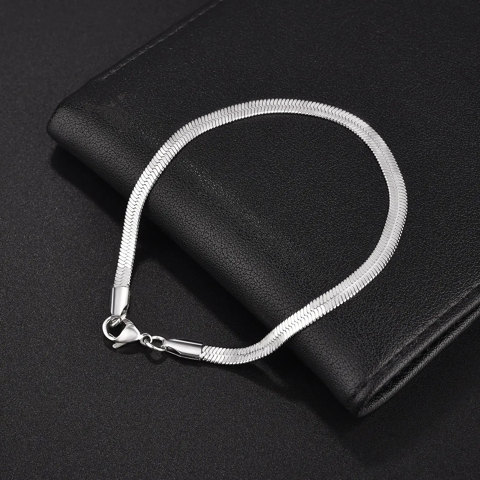 Hot Sale: 3 5MM Stainless Steel Flat Snake Chain Bracelet In Gold & Silver Fashion Jewelry For Men & Women Perfect P 16cm 3mm Sliver