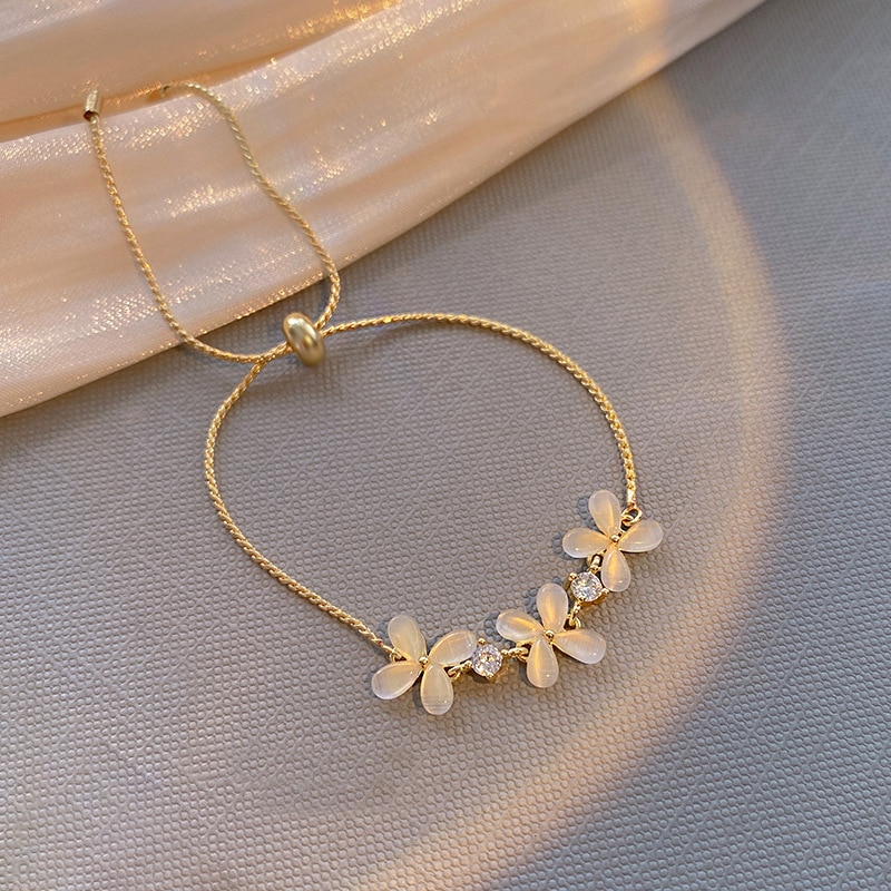 Luxury Gold Plated Clover Bracelet Adjustable Stainless Steel 316L Flower Jewelry For Women earrings green 15 20cm
