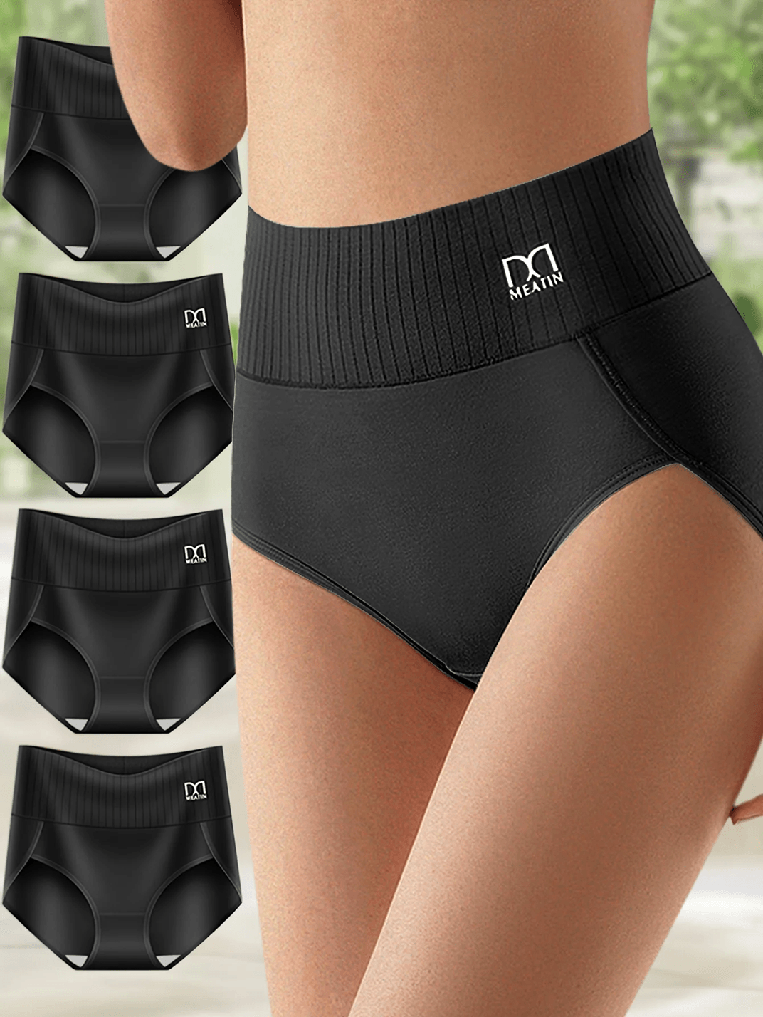 High Waisted Tummy Control Womens Cotton Panties 4 Pack Breathable Underwear s 4 Pcs