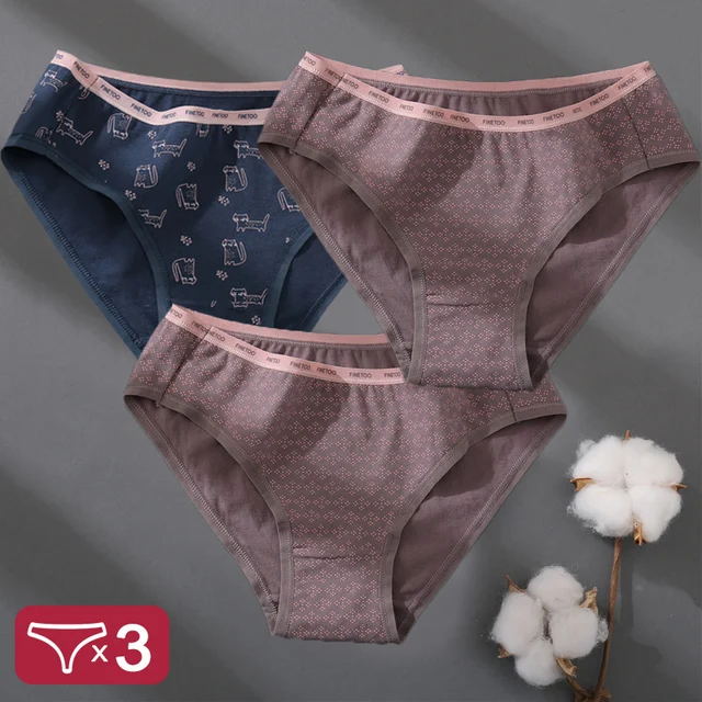 Finetoo 3 Piece Cotton Panties Plus Size Women Underwear XS To 7XL s s