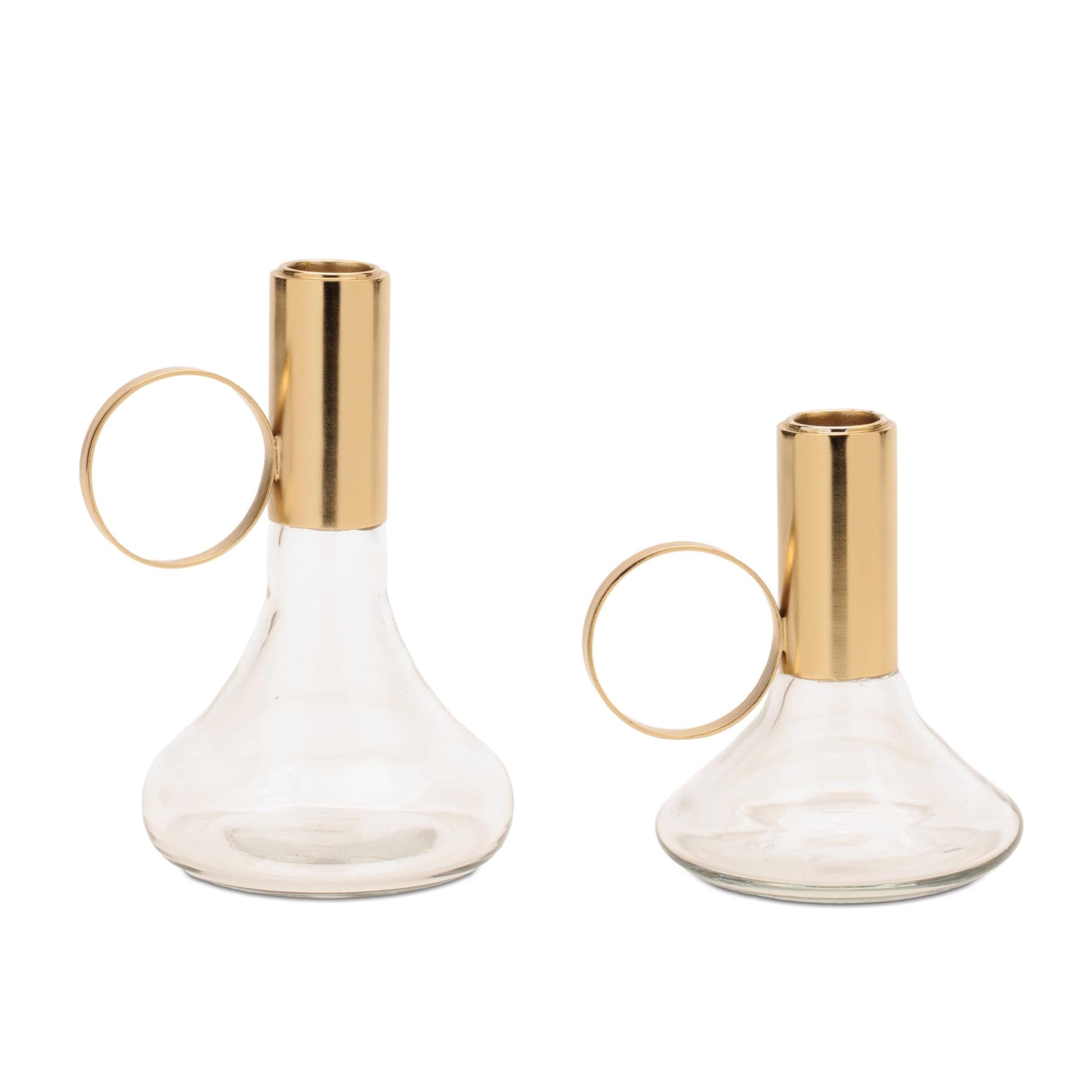 Modern Metal Taper Candle Holder with Glass Base (Set of 2)