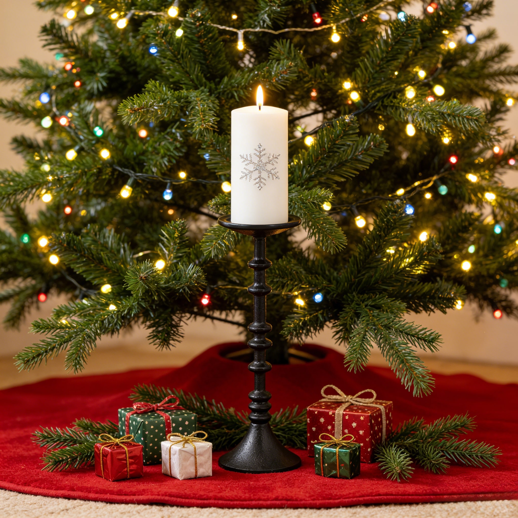 Set of 2 Black Iron Candle Holders with Spindle Design, Industrial & Traditional Home Decor - 4x13.5"
