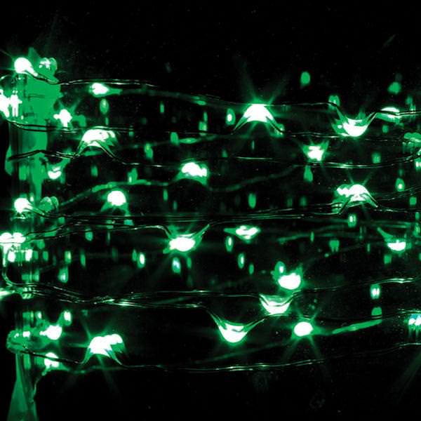 Action Lighting 10200 - 36 Light 12' Green Wire Green Battery Operated Indoor LED Micro Miniature Christmas Light String Set with Timer