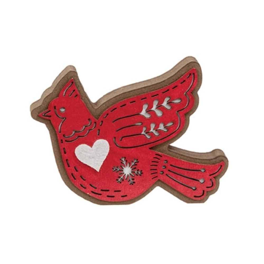 Rustic Snowflake Cardinal Shelf Sitter Laser Cut Wood - 5.25" x 1" x 3.75"