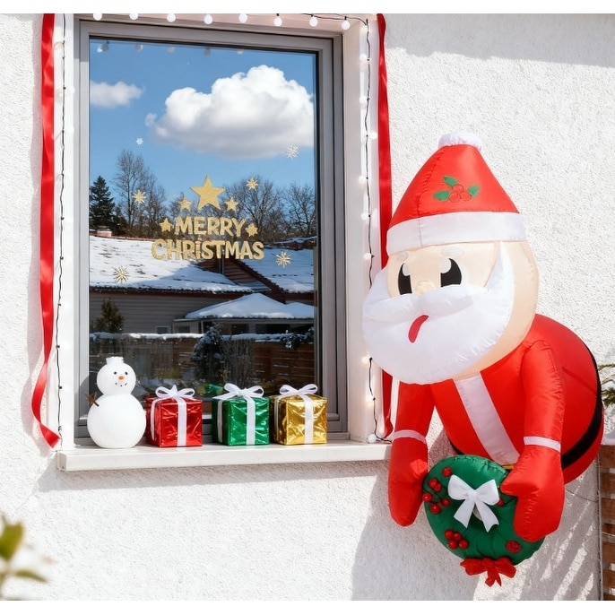 Christmas Inflatable Decoration Santa Claus Holding Wreath LED Lights
