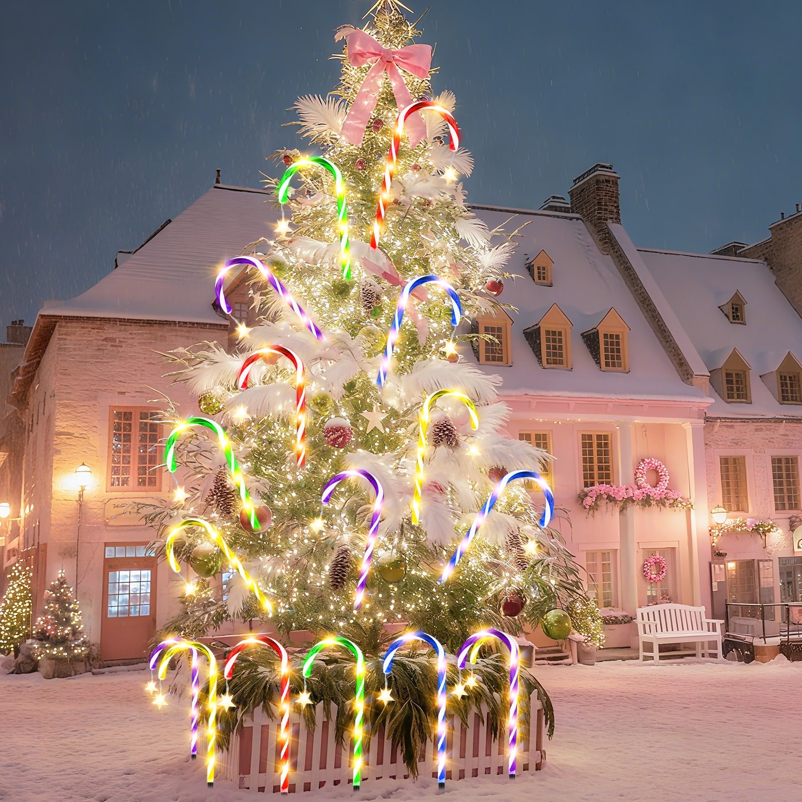 10 Pack Solar Candy Cane Lights, Outdoor Christmas Pathway Decor with Remote Control