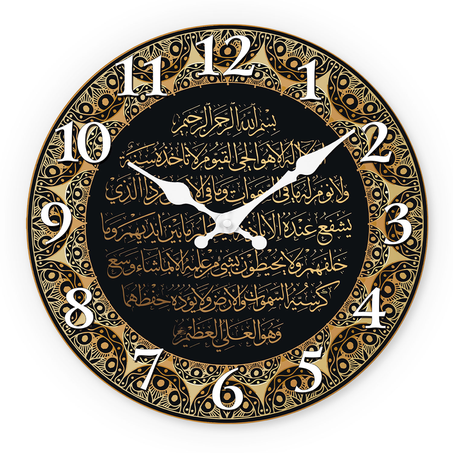 Retro Art Islamic Calligraphy Wooden Wall Clock, Silent Quartz Clock, Living Room Bedroom Kitchen Home Decoration islamic Calligraphy Clock 14 Inch