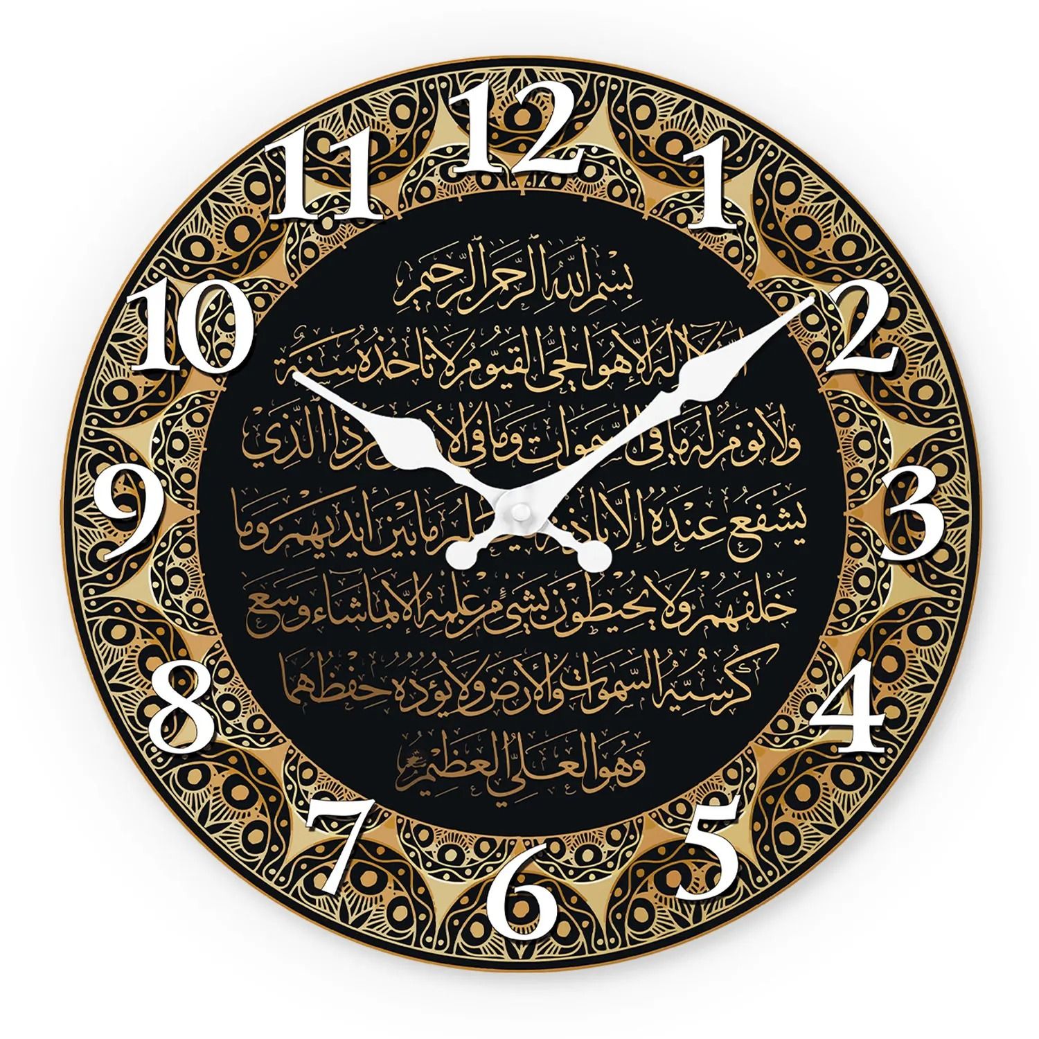 Islamic Wall Clock Arabic Calligraphy Wooden Silent Quartz Decor bronze 16 Inches