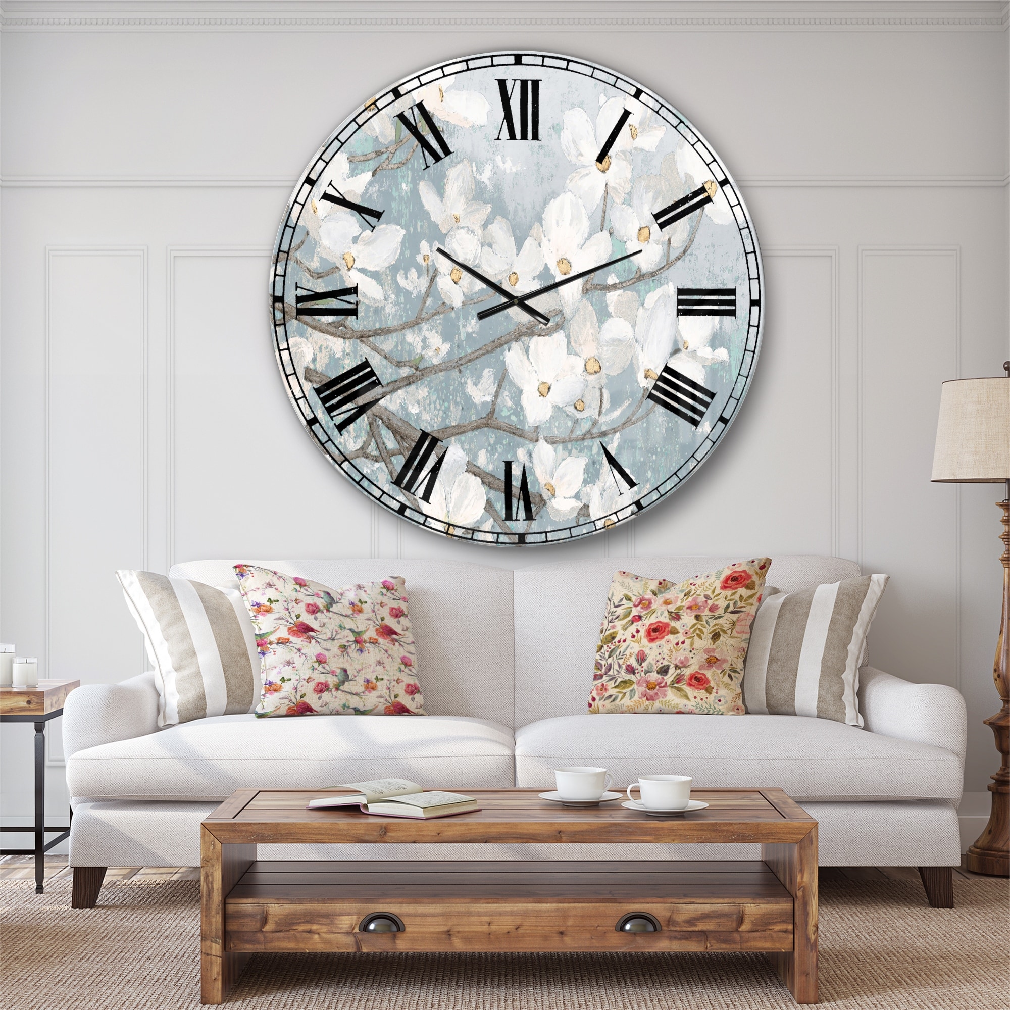 Designart 'Blue on Grey Blossoms ' Traditional Large Wall CLock