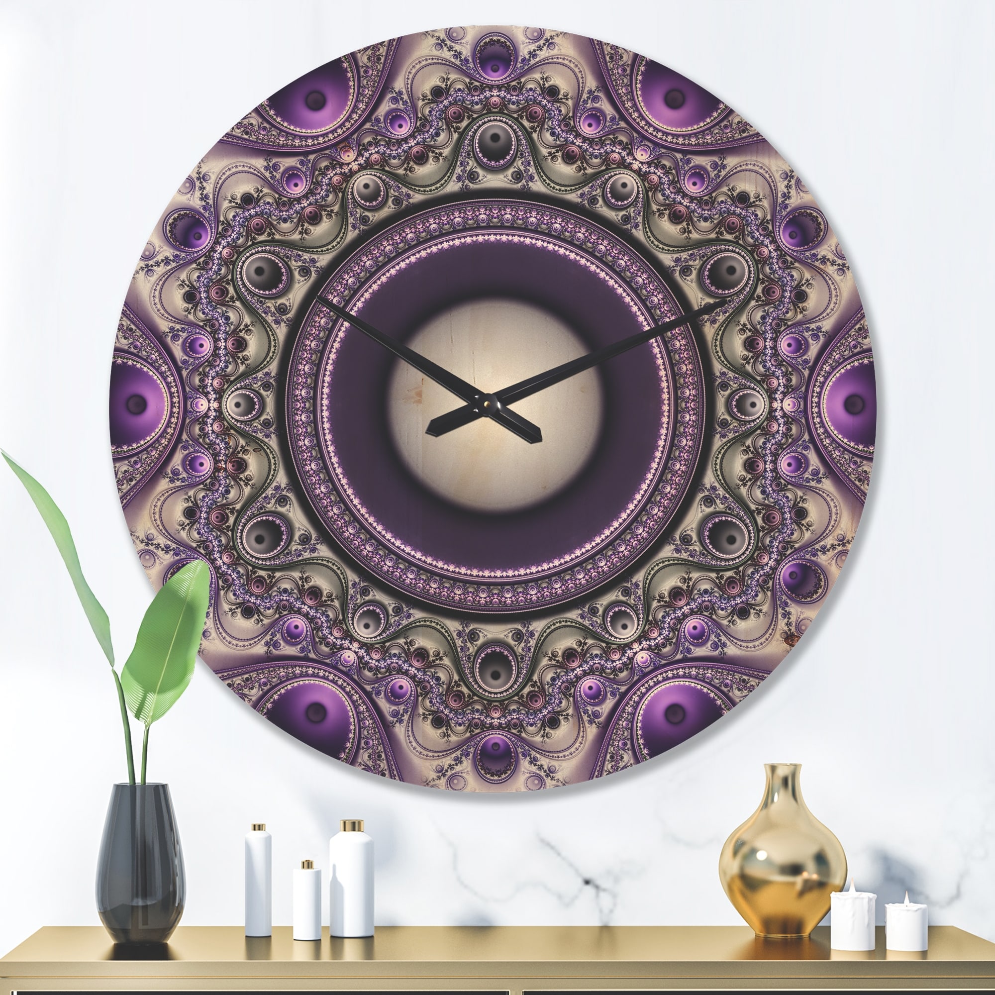 Designart 'Purple Fractal Pattern with Circles' Modern Wood Wall Clock