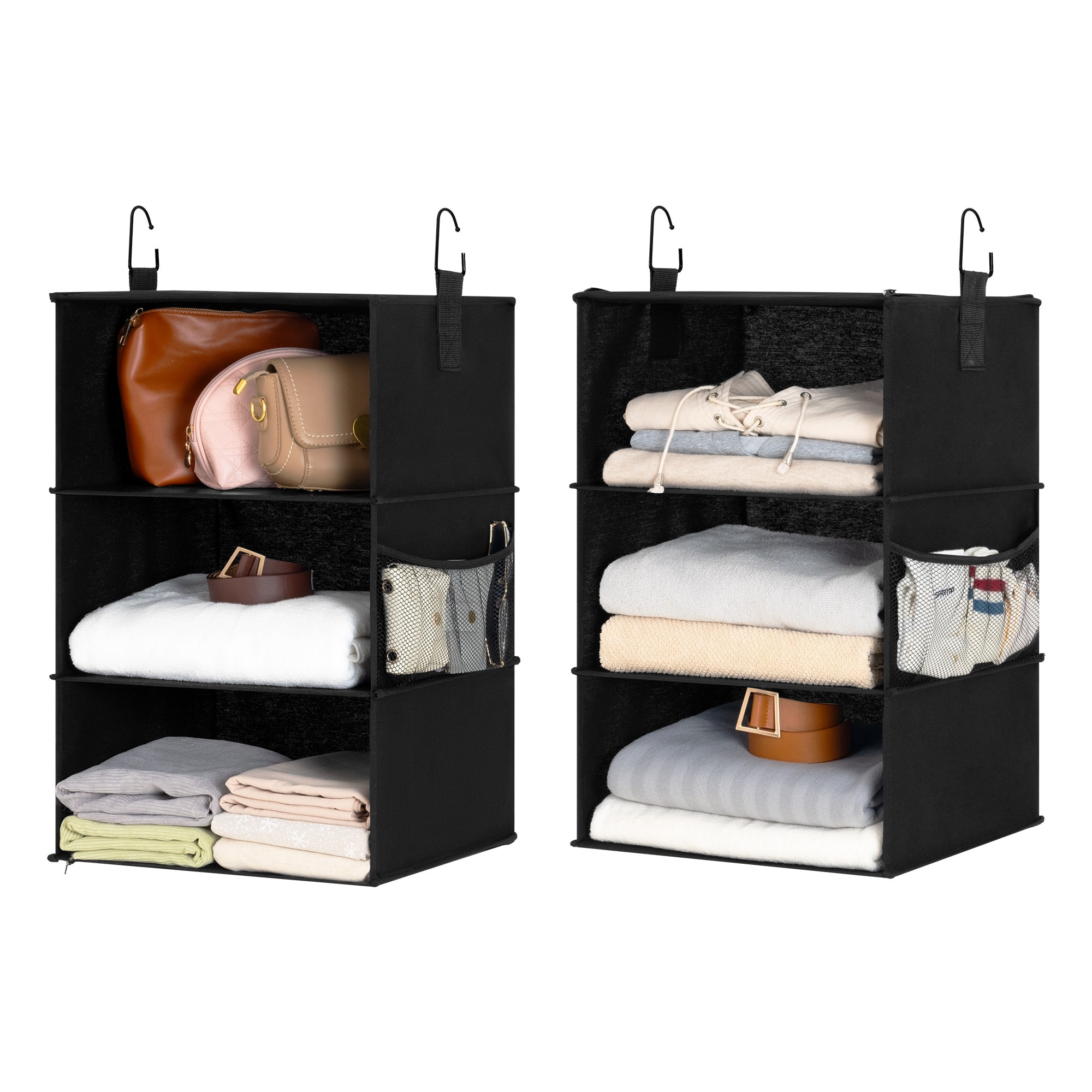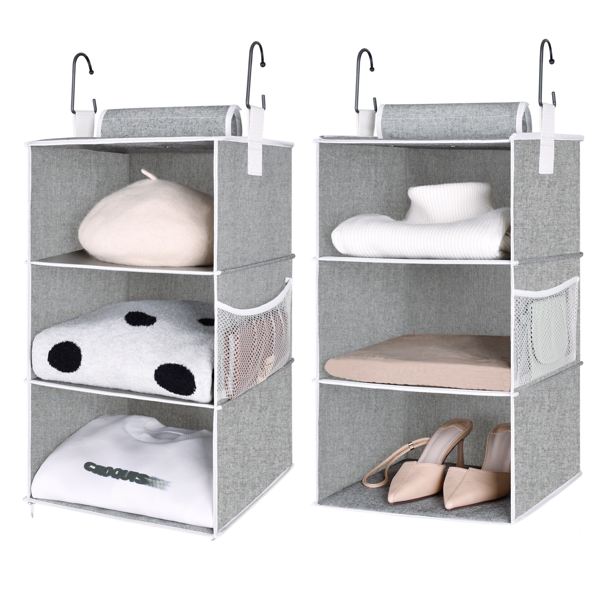 6-Shelf Closet Organizers, Two 3-Shelf Separable Hanging Shelves for Closet