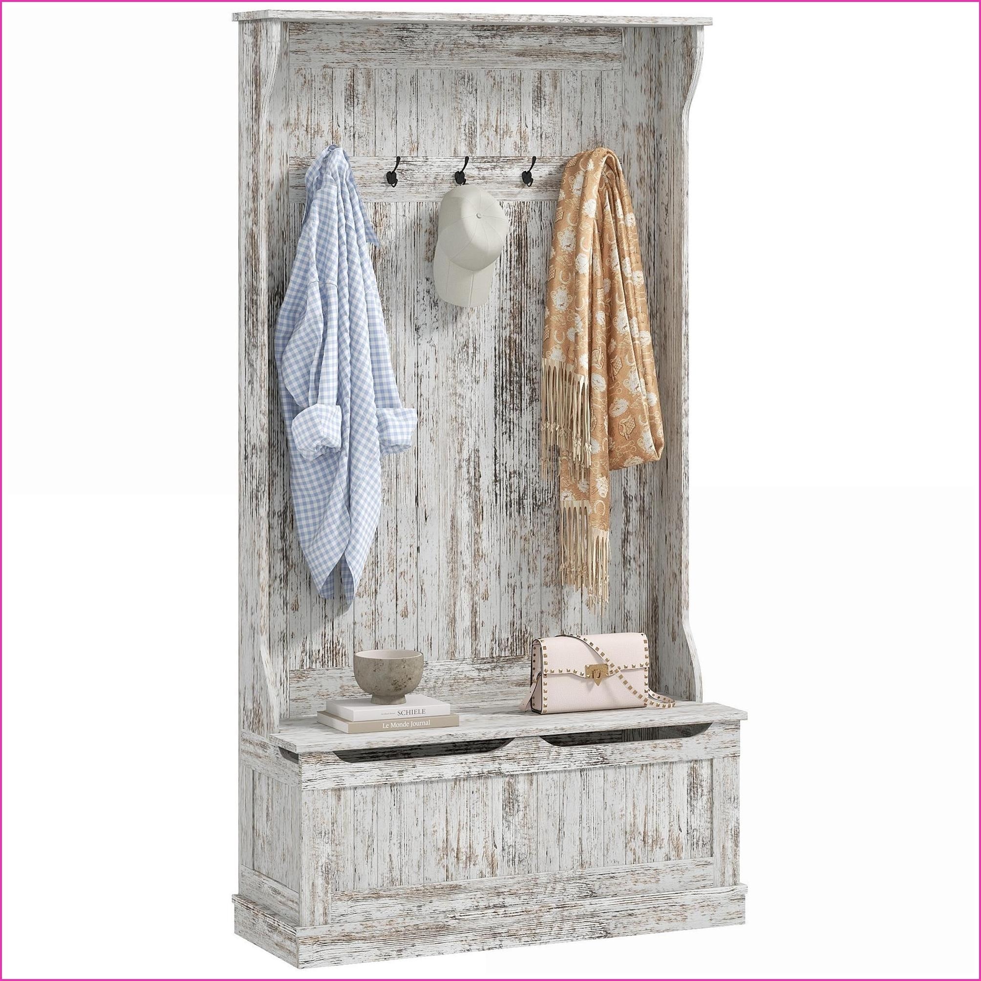 Coat Racks with Storage Bench, HOMCOM 3-in-1 Entryway Hall Tree, 5 Hooks, Distressed White, White, MDF