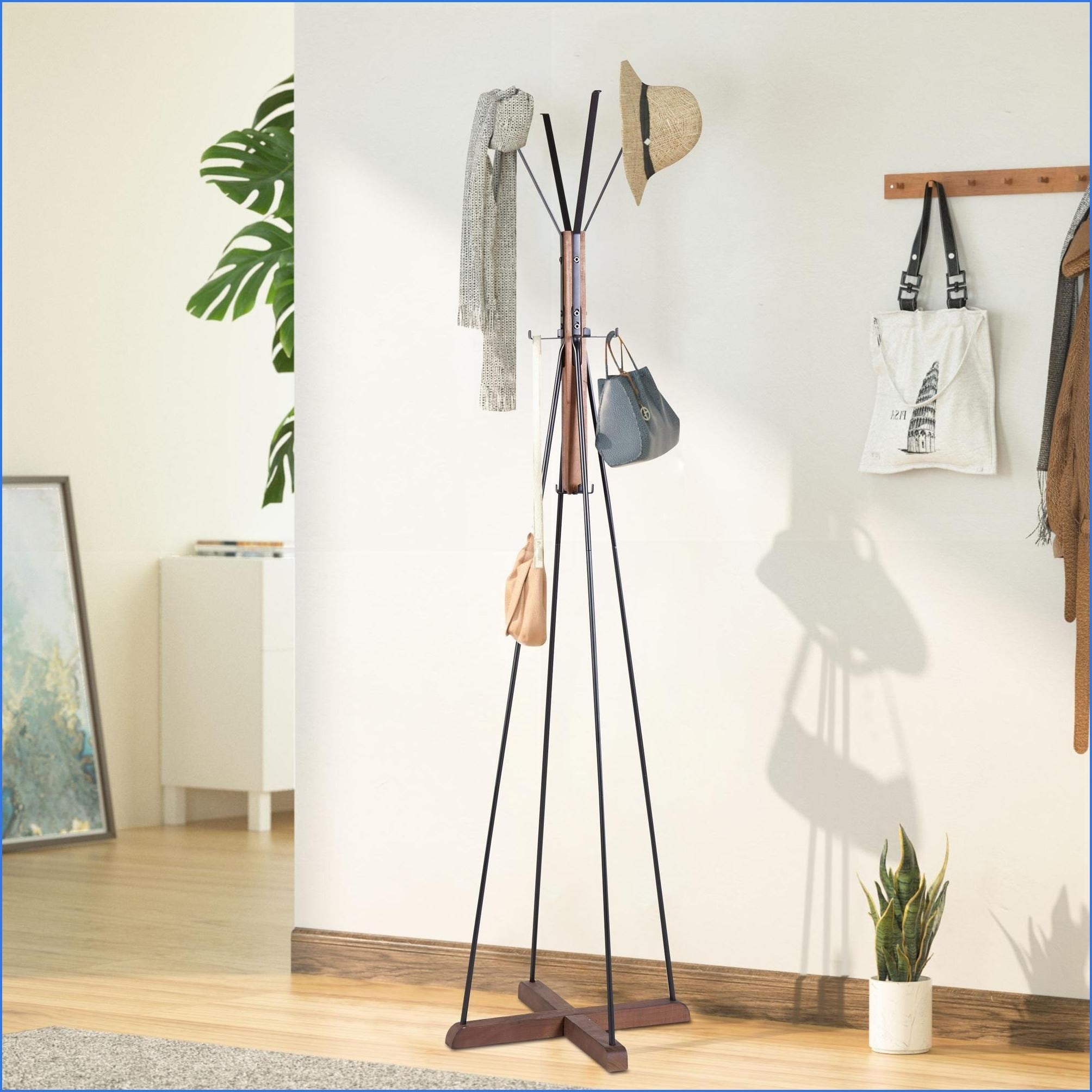 Roomfitters Double-Layer Coat Rack with Antique Wood Veneer and Metal Stand, 70"H x 34.6"W, Multi-Functional Storage