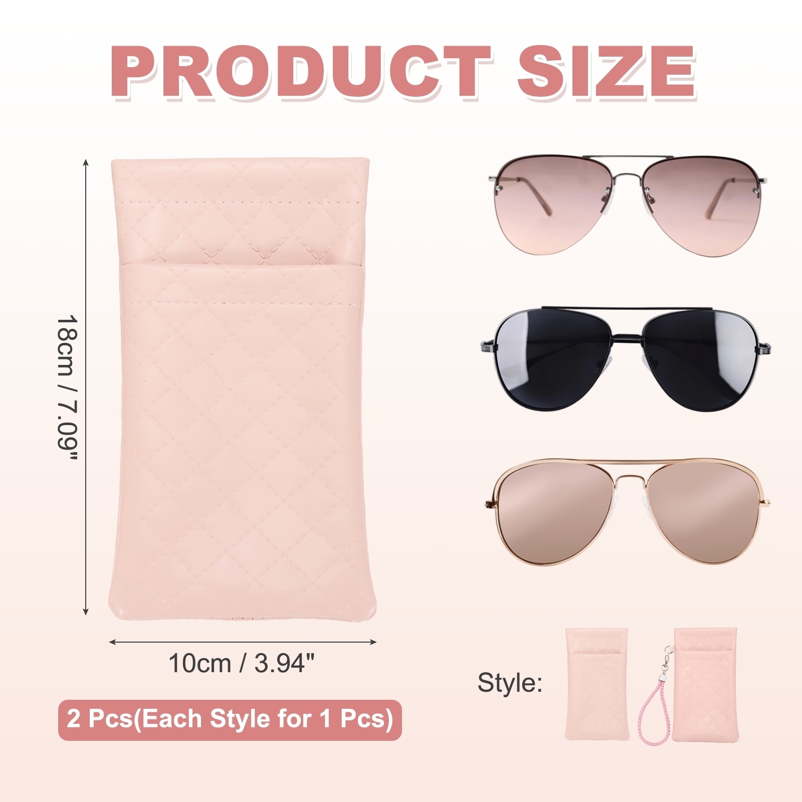PU Leather Double Squeeze Top Eyeglass Pouch with Carrying Strap, Soft Eyeglass Case Organizer, Set