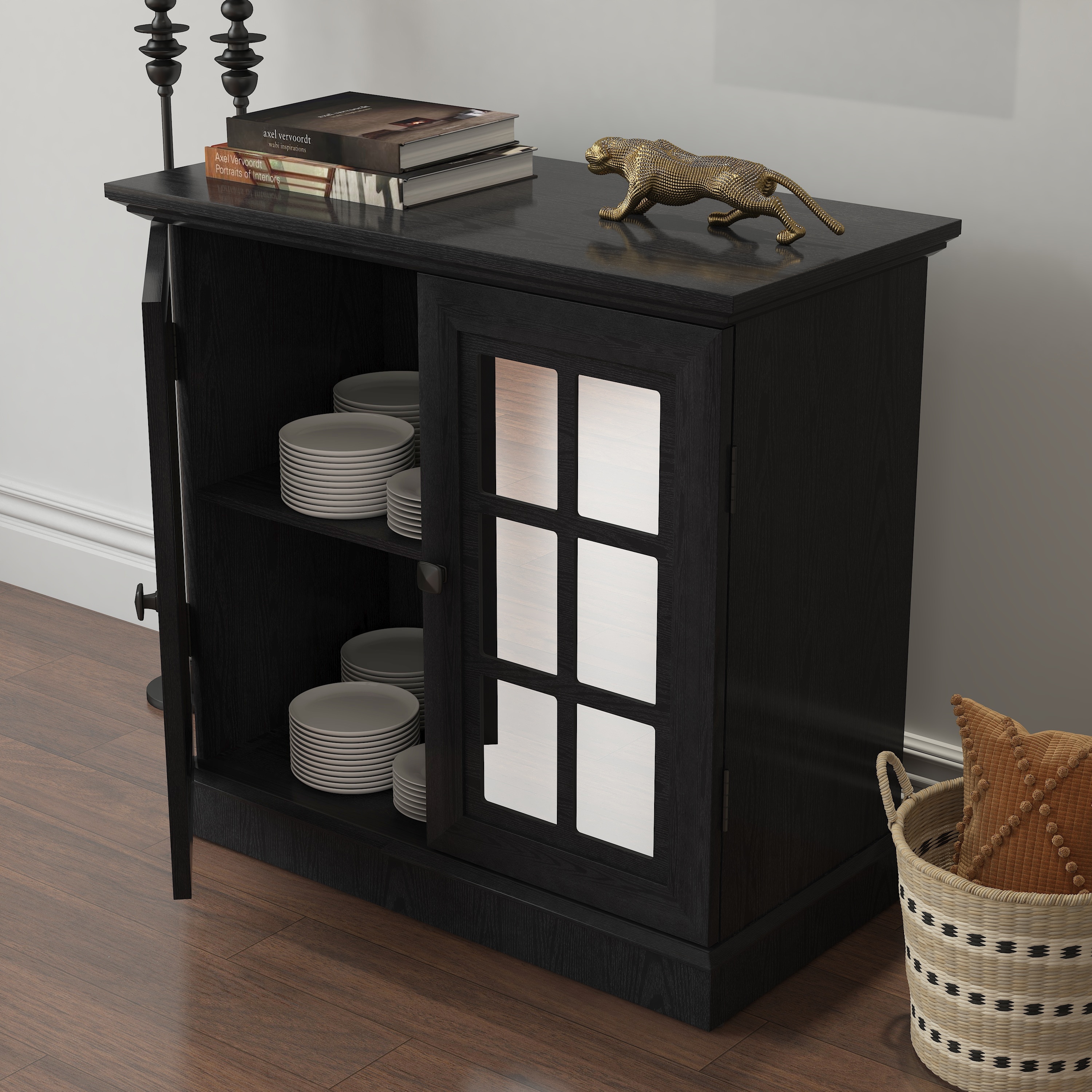 3D Wood Grain MDF Storage Sideboard Cabinet – 2 Decorative Acrylic Mirrored Doors, Adjustable Shelf & Metal Handles.