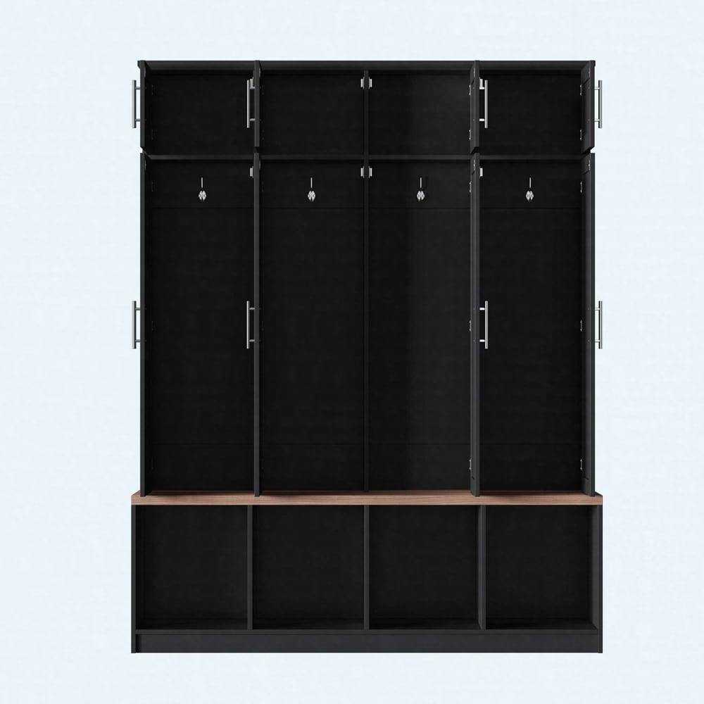 Farmhouse Hall Tree with 8-Door Shoe Cabinet, Walnut Bench & 4 Hidden Hanging Hooks