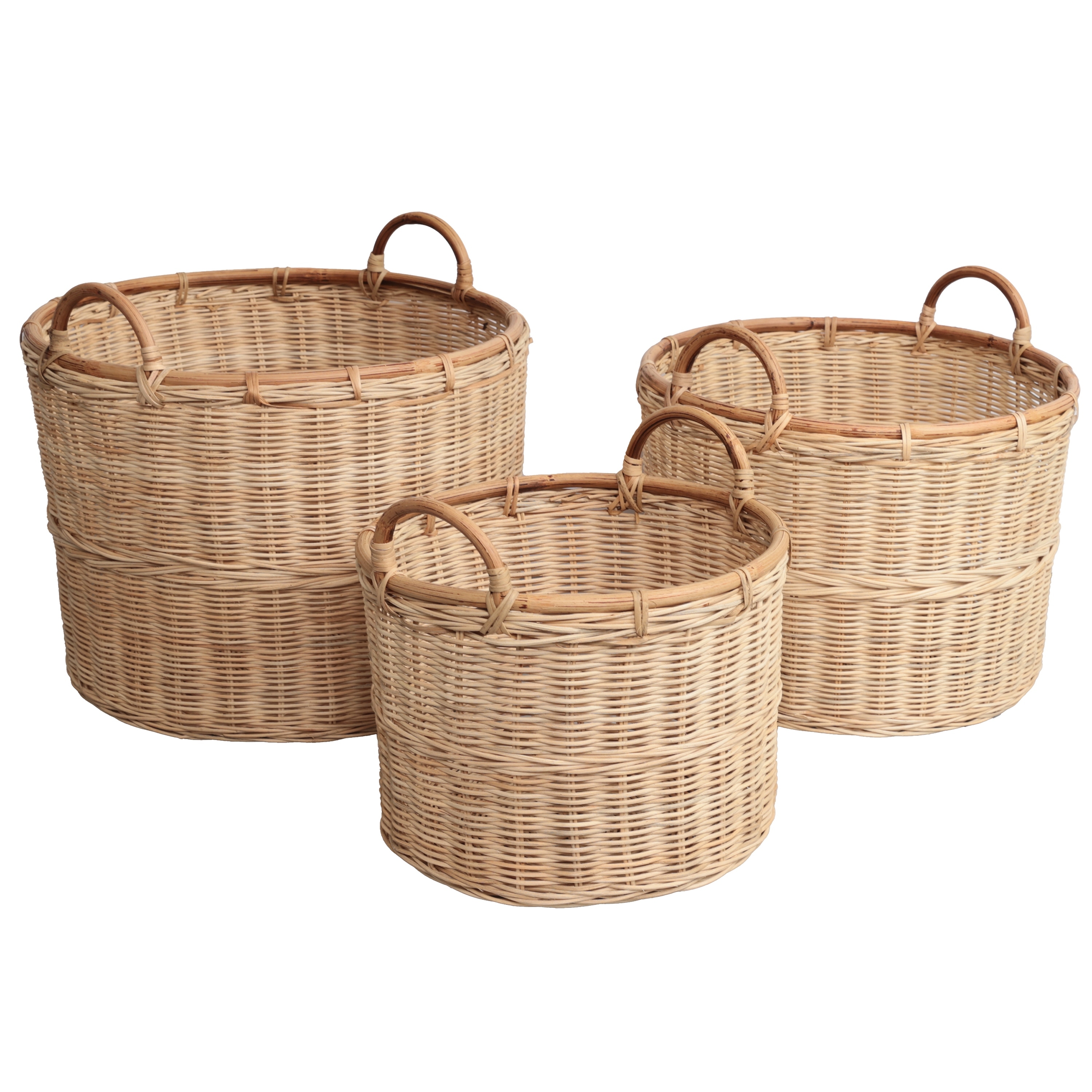 Vista Handwoven Rattan Nesting Storage Baskets with Handles (Set of 3)
