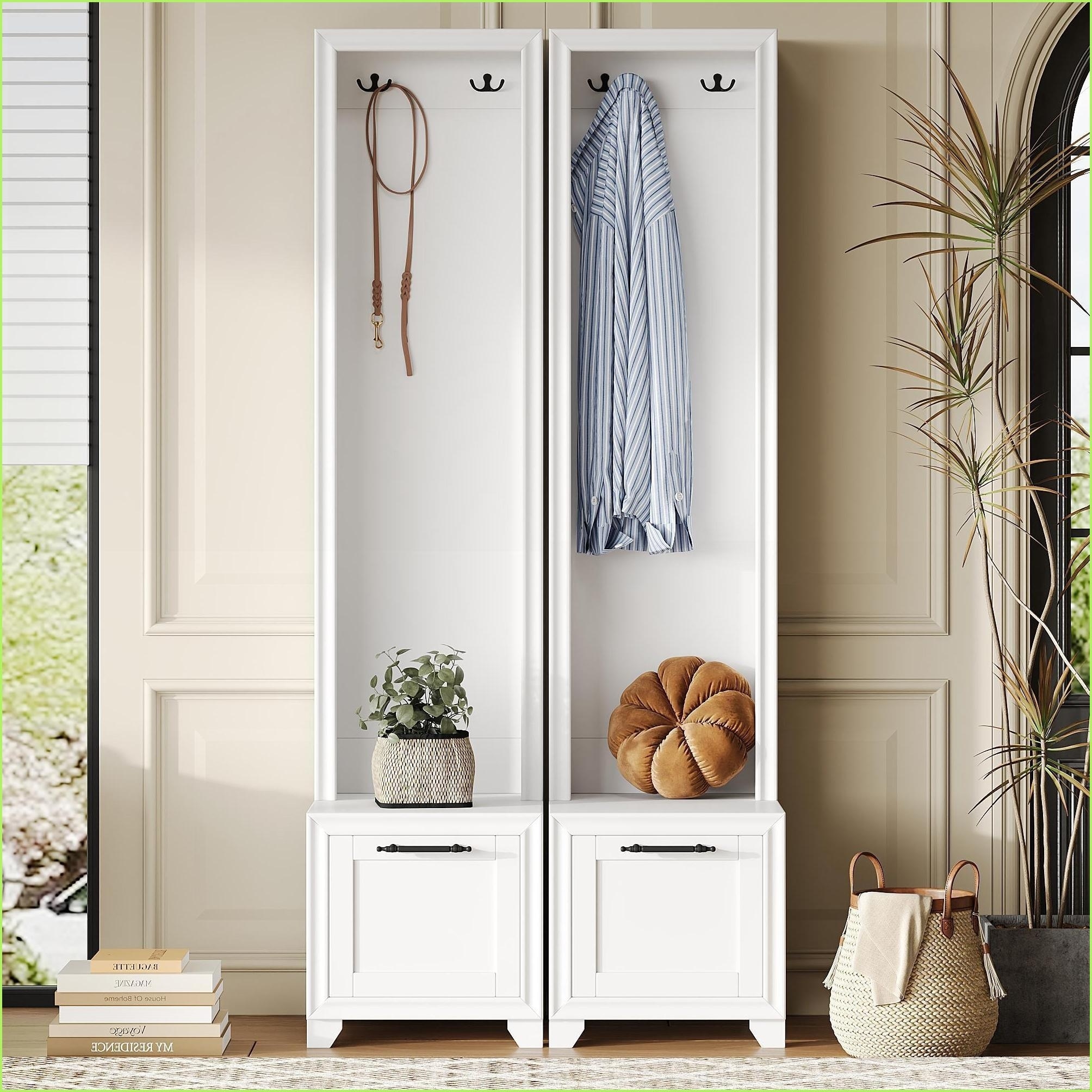 Coat Racks, Set of 2 French Retro 3-in-1 Hall Tree with Bench and Drawers, White, White, MDF