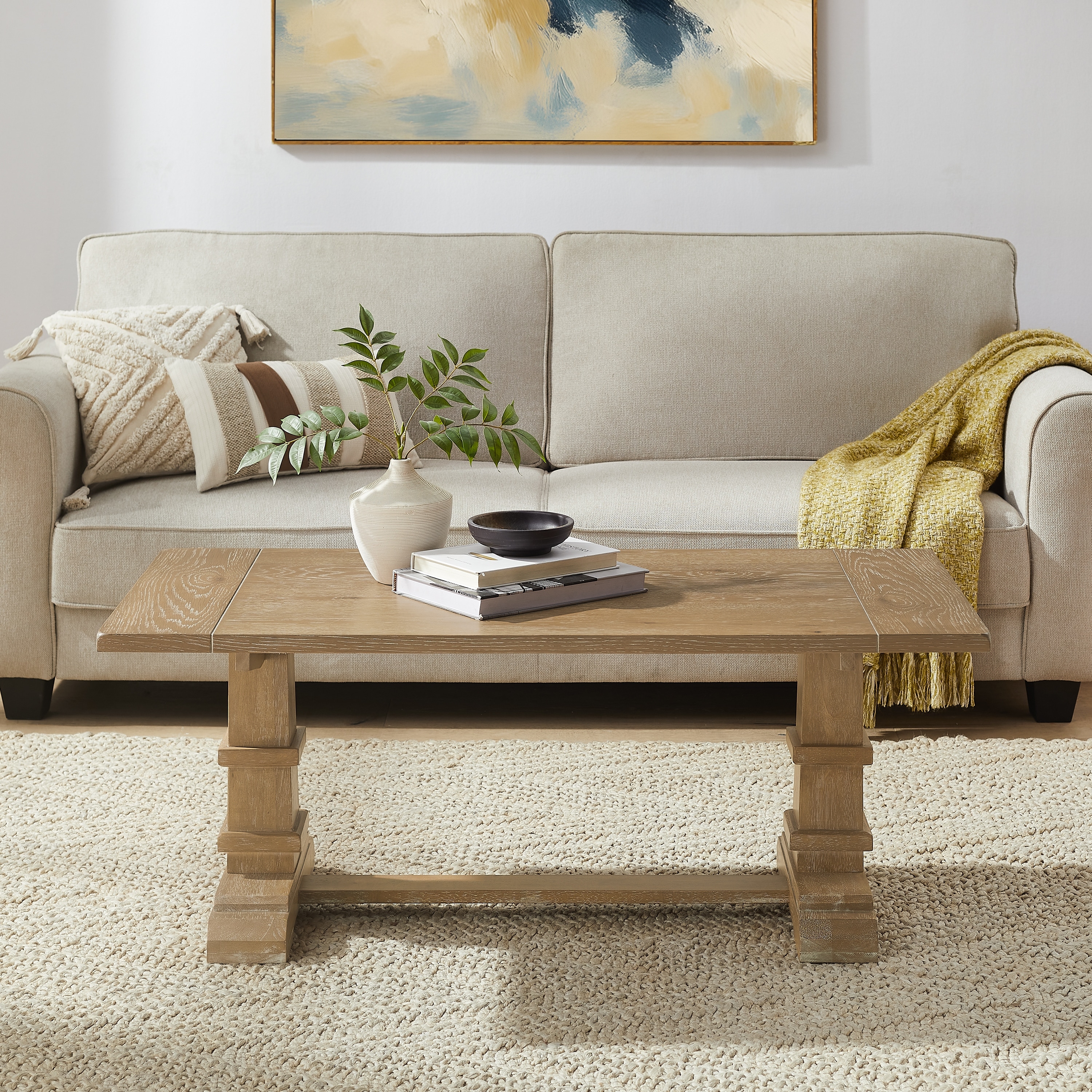 HULALA HOME Derk Transitional 47"W Spindle Fluted Rectangular Storage Coffee Table with Solid Wood Drawers