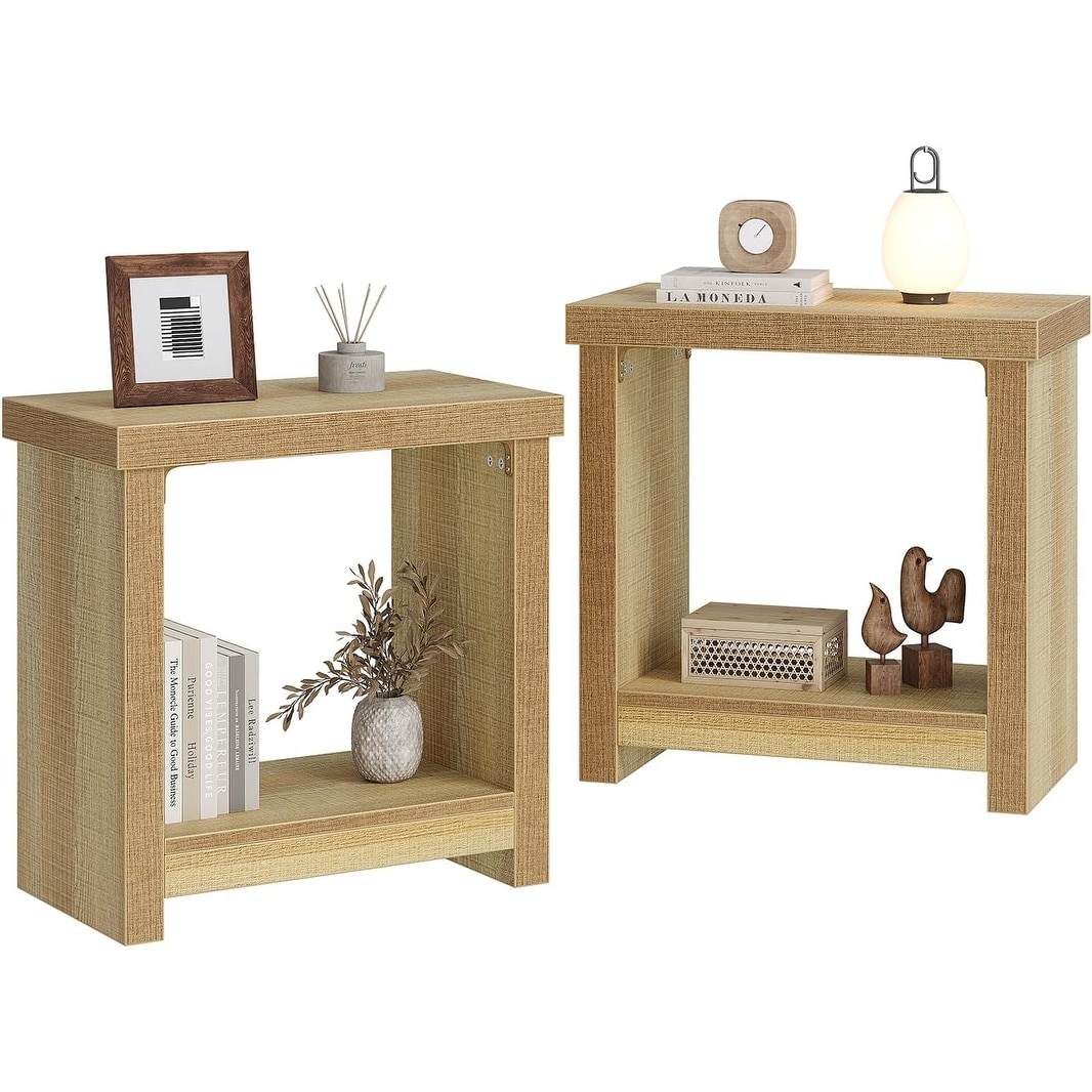 End Tables Set of 2 with Storage Shelves, Narrow Side Tables for Living Room and Bedroom, Slim Nightstand, Natural (2 Pieces)