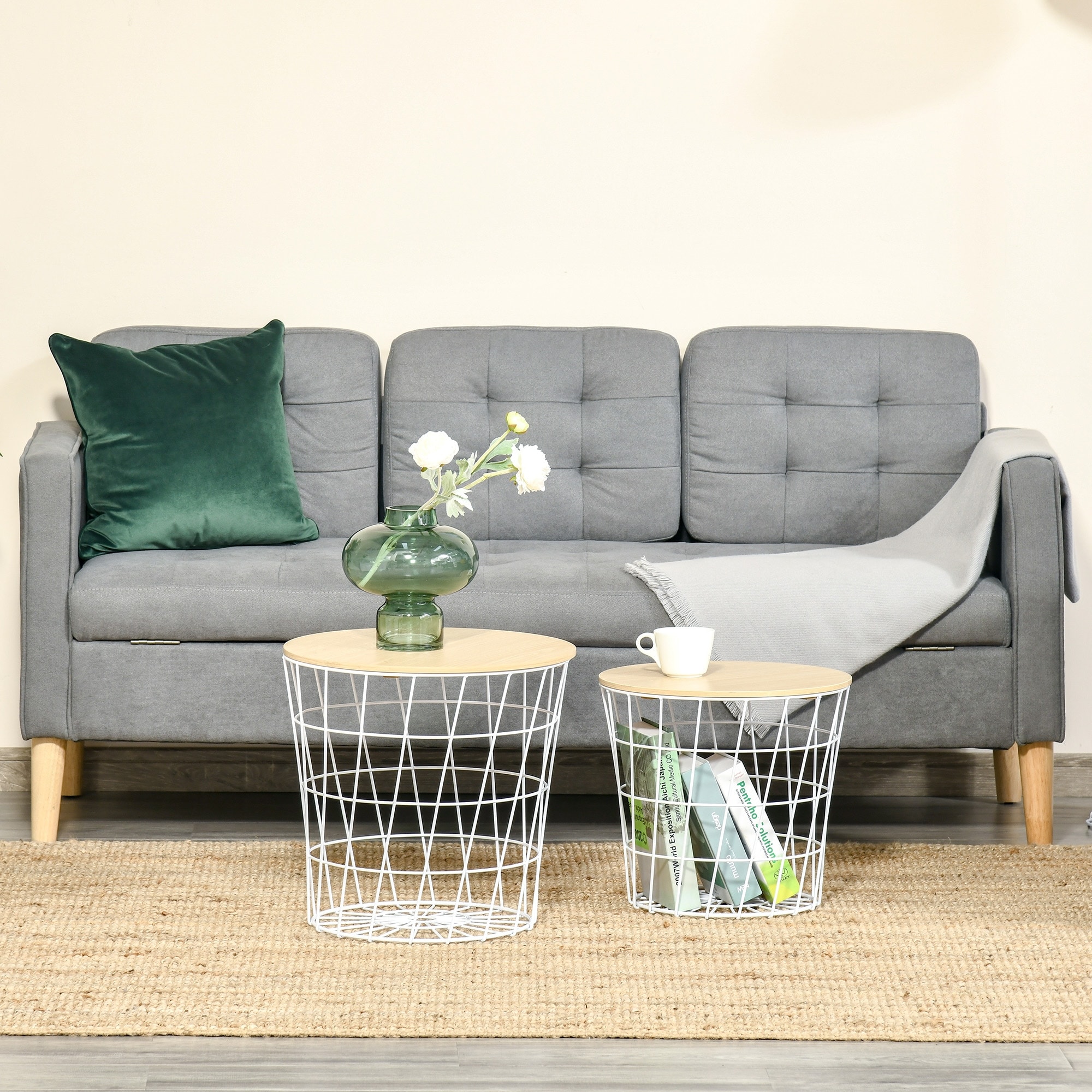 HOMCOM End Tables Set Of 2 Nesting Tables With Storage Round Accent Side Tables With Removable Top For Living Room Bedroom