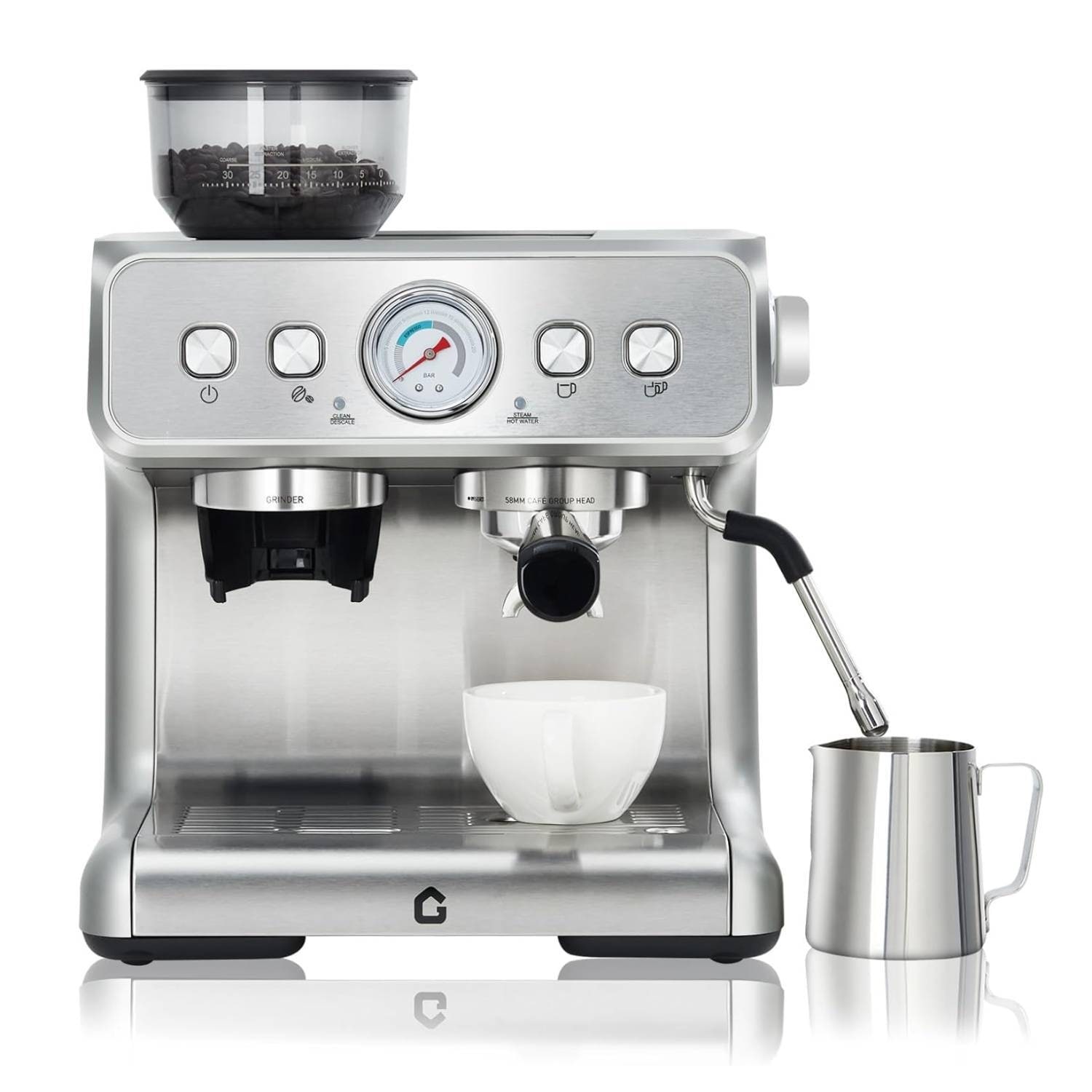 Espresso Coffee Machine with Grinder & 20 Bar Pressure, 2.8L Removable Water Tank, Silver