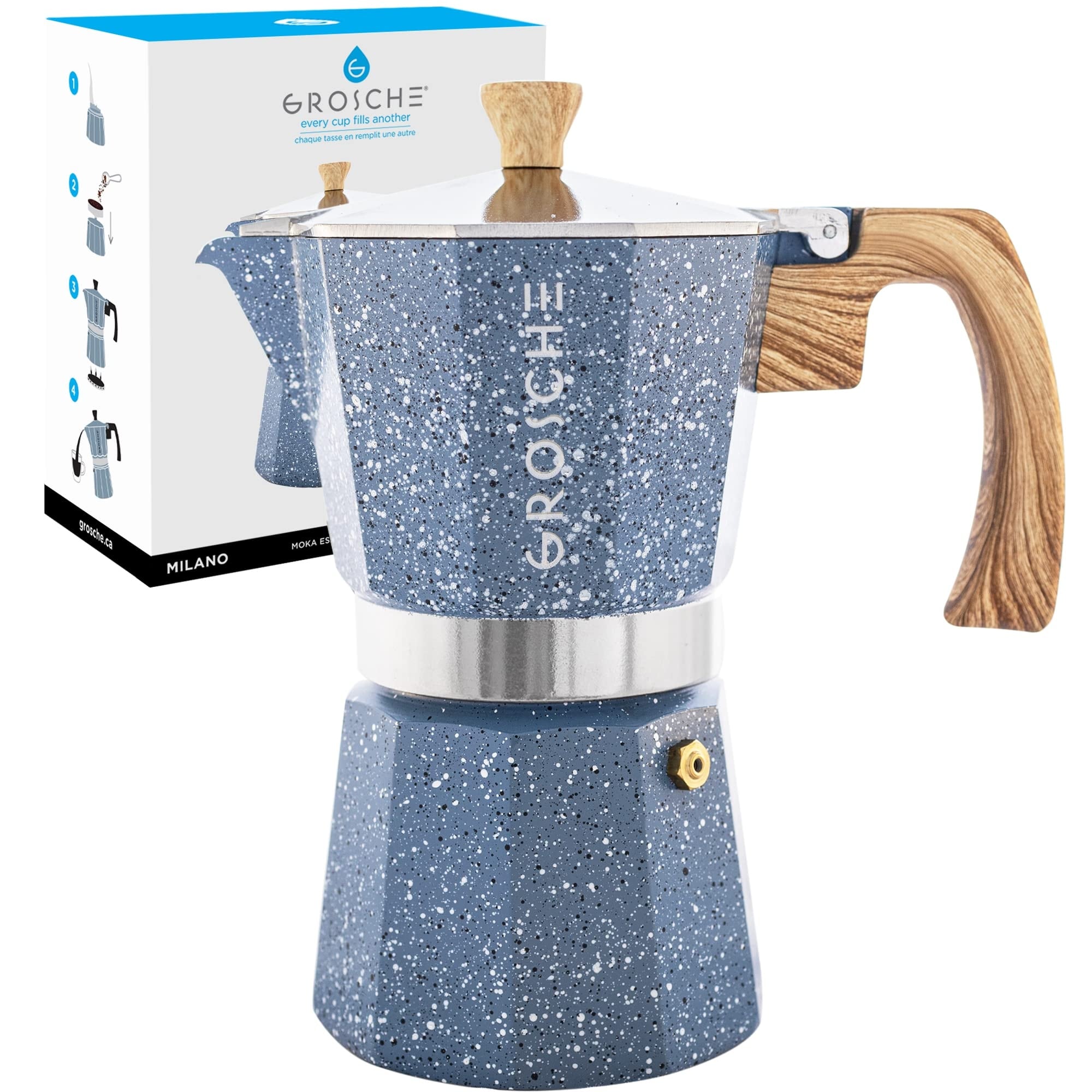 Milano Moka pot, Stovetop Espresso maker, Greca Coffee Maker, Stovetop coffee maker and espresso maker percolator (Grey, 9 cup)
