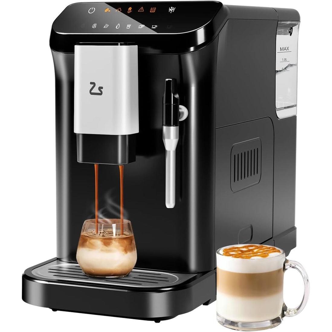 Super Automatic Espresso Machine with Grinder & Milk Frother, 6 One-Touch Recipes - 12.22"D x 7.08"W x 16.92"H