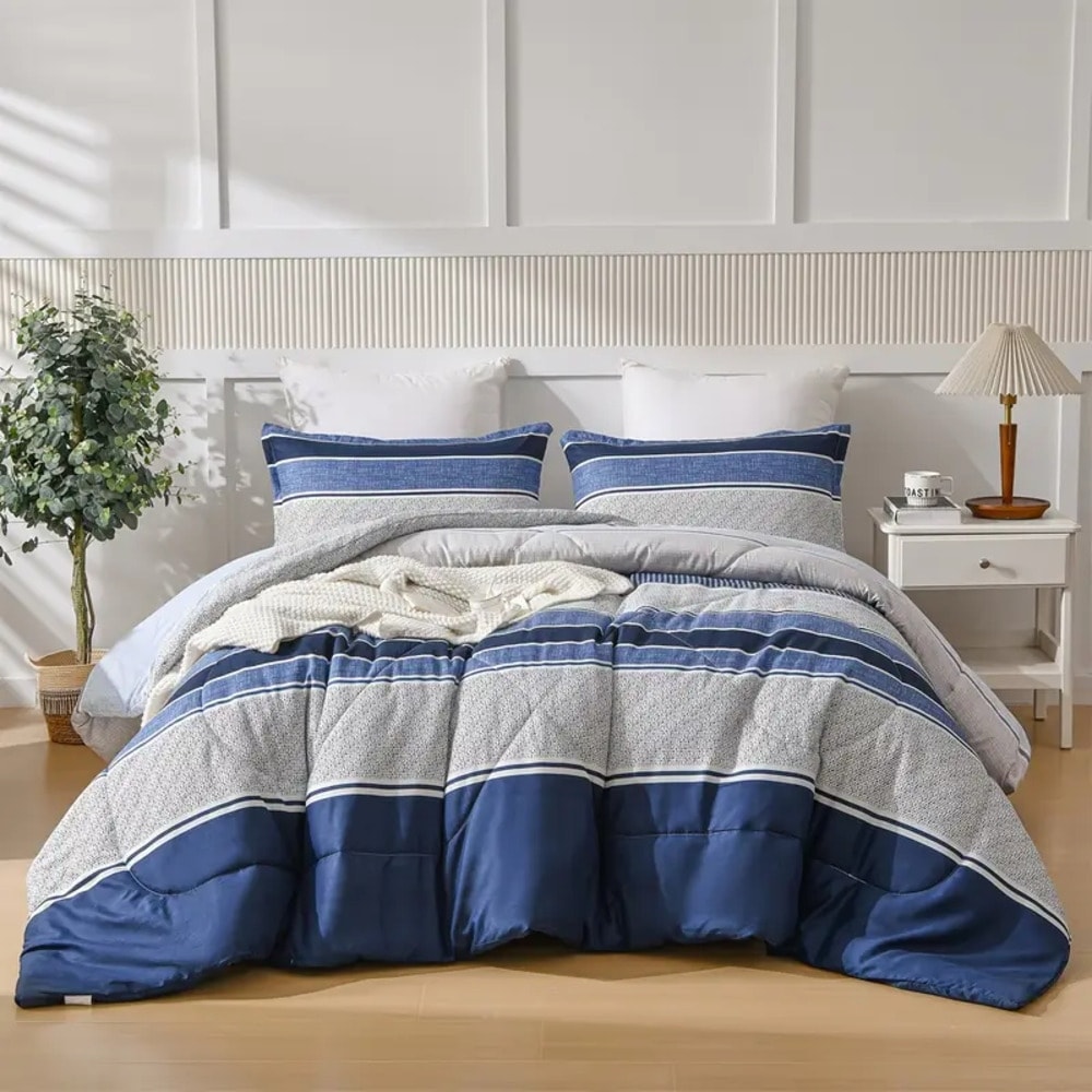 Shatex Cozy Blue and White Striped 3-Piece Comfoter Set