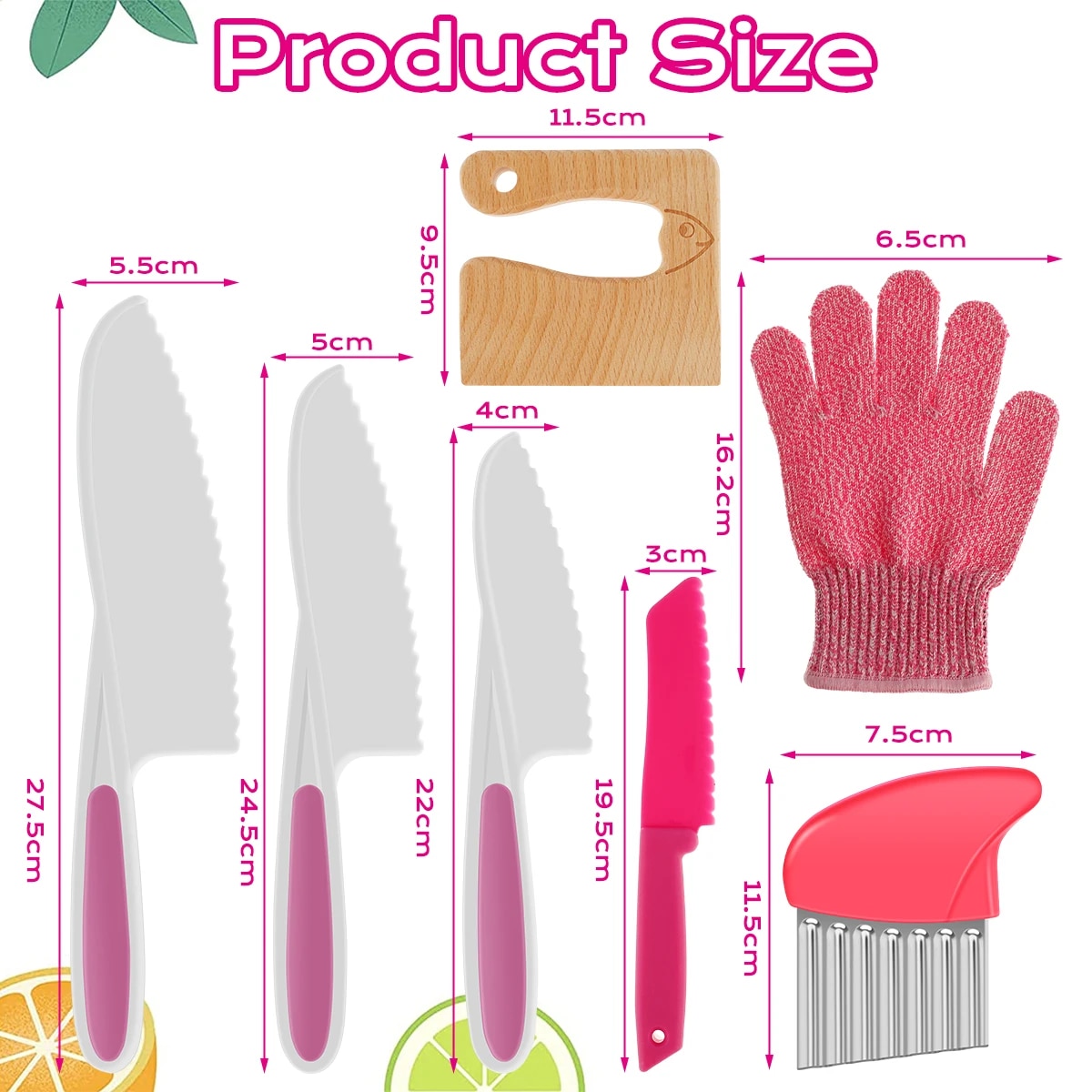 Kids Cooking Cutter Set: Toddler Wooden & Plastic Fruit Knives Kitchen Supplies 5
