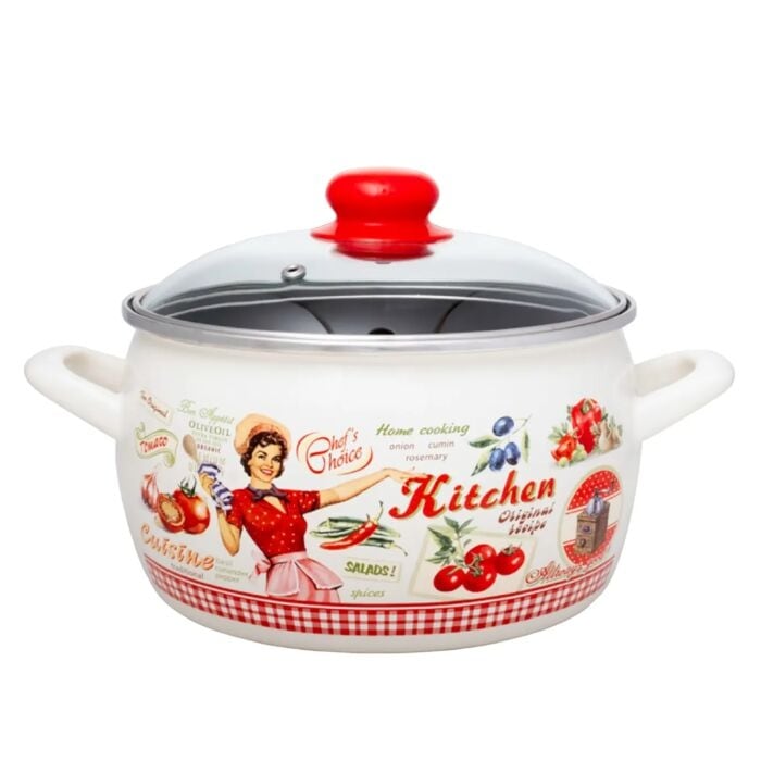 MET-ROT Retro Kitchen Enamel Casserole with Glass Lid