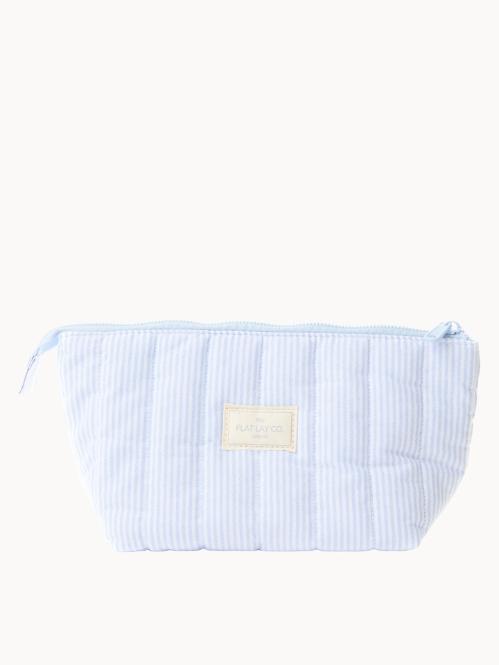 The Flat Lay Co. Marshmallow Essential Makeup Pouch - Cozy Cotton Blue Stripes